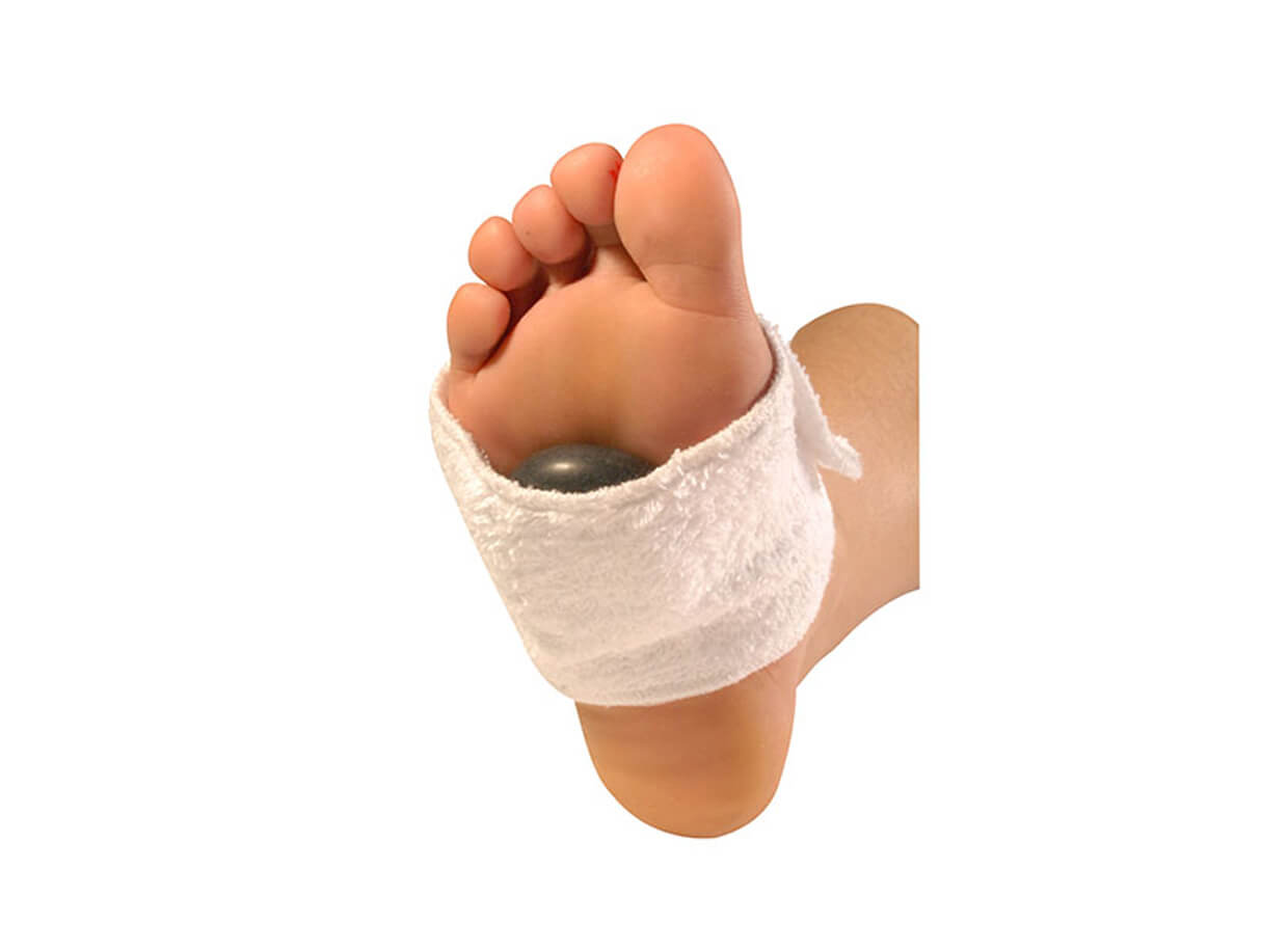 Puneți pietrele vulcanice pe tălpi, între degetele de la picioare sau pe zona dorită a mâinilor, acoperiți-le cu bandajul și fixați cu închiderea velcro. Pentru efecte și mai bune a terapiei puteți împacheta extremitățile într-un prosop, sau cearșaf.