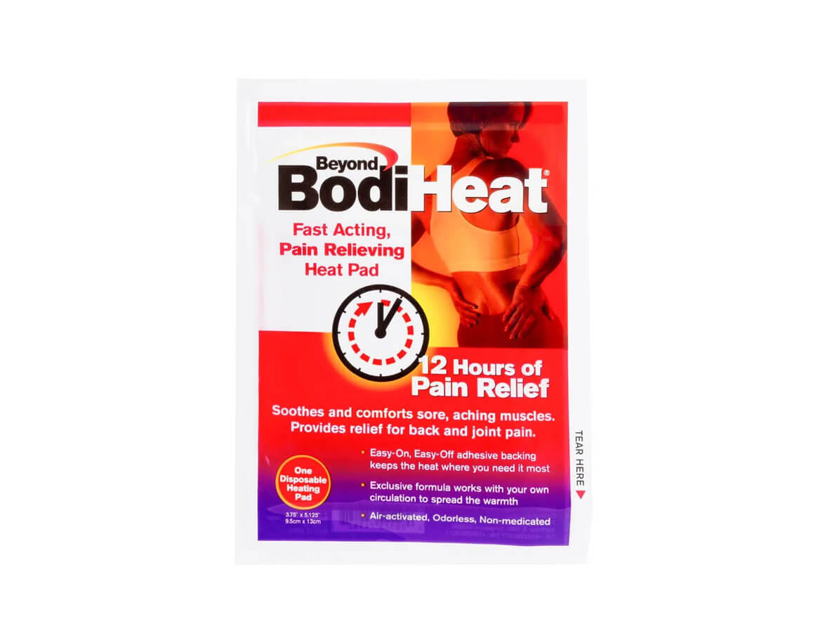 Plasture încălzitor de unică folosință BodiHeat, pentru ameliorarea durerilor provocate de mușchi rigizi, articulații, coloană vertebrală și a durerilor menstruale. Acționează și în medii foarte reci, precum și în timpul activităților sportive.