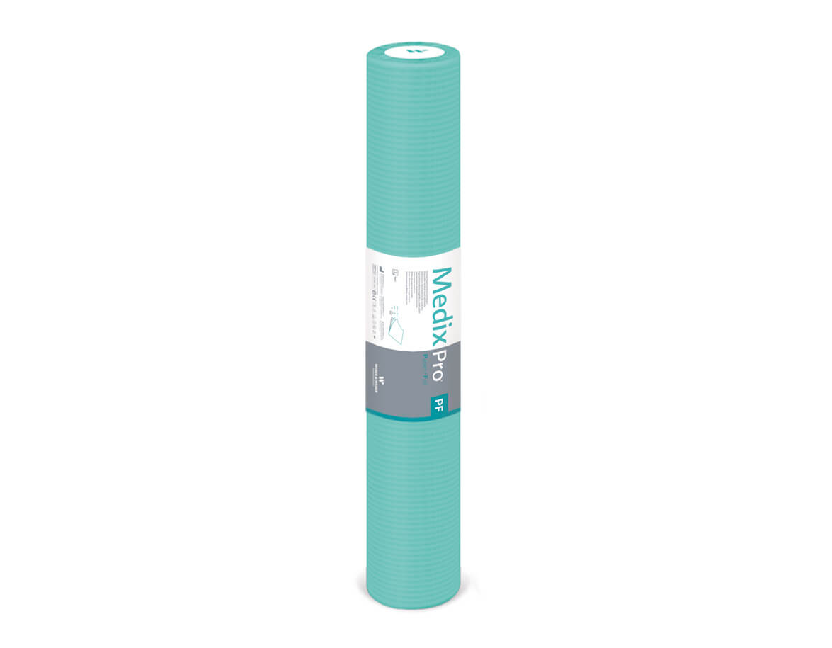 Cearșaf de unică folosință cu triplu strat din folie și celuloză, cu o greutate de 54 g/m2 la rolă. Materialul moale al celor două straturi superioare din hârtie asigură confort, în timp ce stratul inferior din polietilenă asigură impermeabilitate.