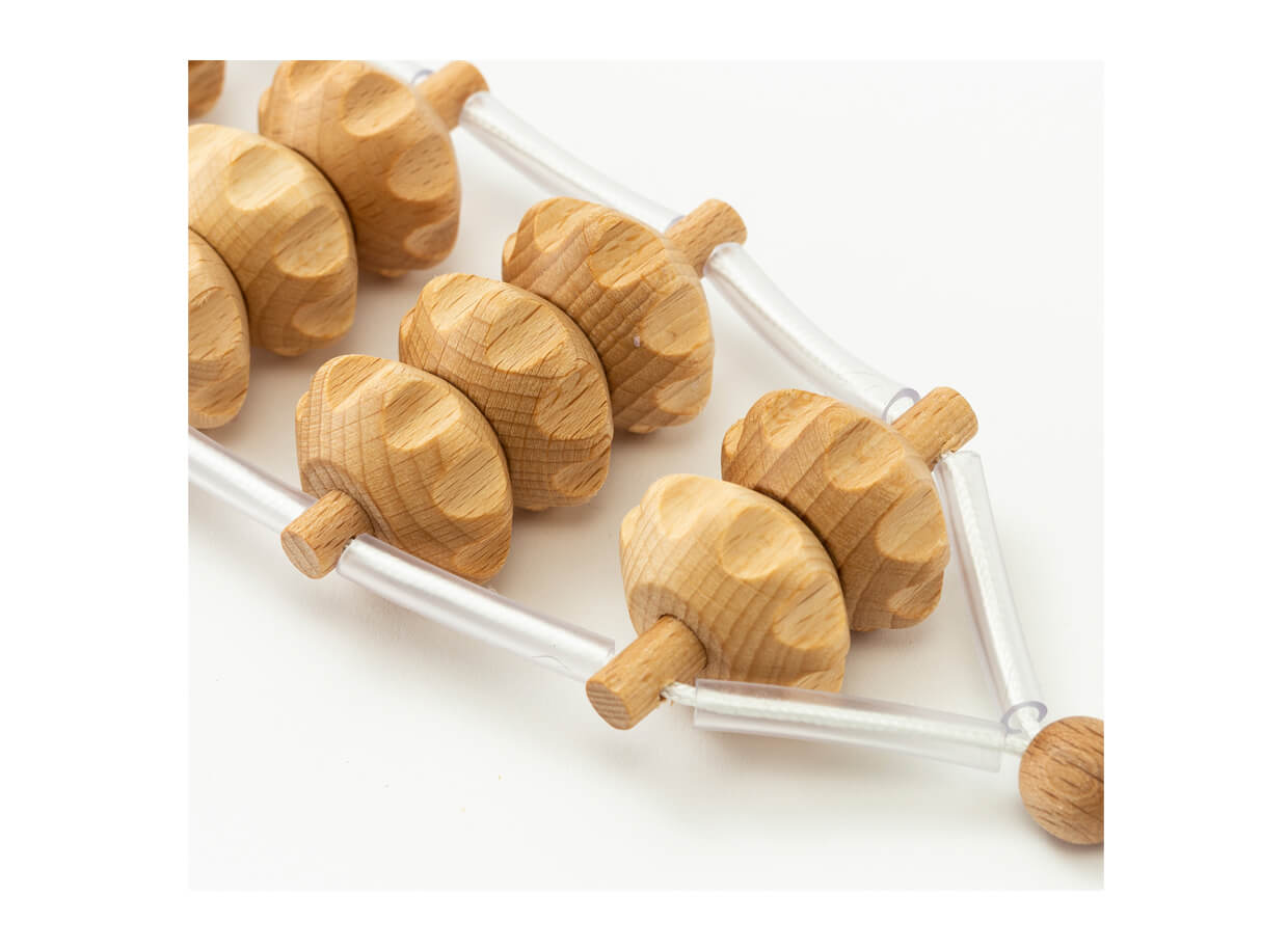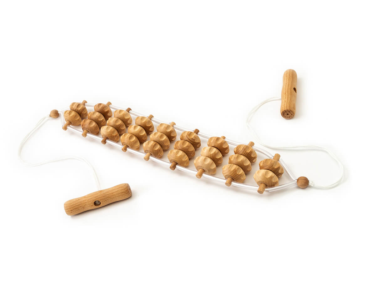 Centura pentru masaj din lemn de fag, este concepută din 25 de role de masaj modelate. Este excelentă pentru auto-masajul spatelui, taliei, șoldurilor, feselor și a coapselor. Este de asemenea utilizată și în cadrul saloanelor profesionale de masaj.