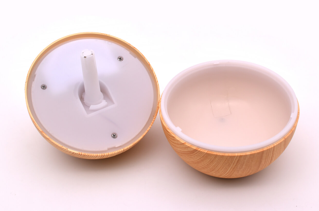 Umidificator cu conexiune USB și efect de LED-uri. Mic, cu un design foarte frumos sub forma unei bile cu un spațiu teșit pentru evacuarea aburului. Posibilitatea de a cumpăra adaptor USB și role de absorbție pentru difuzoare de arome.