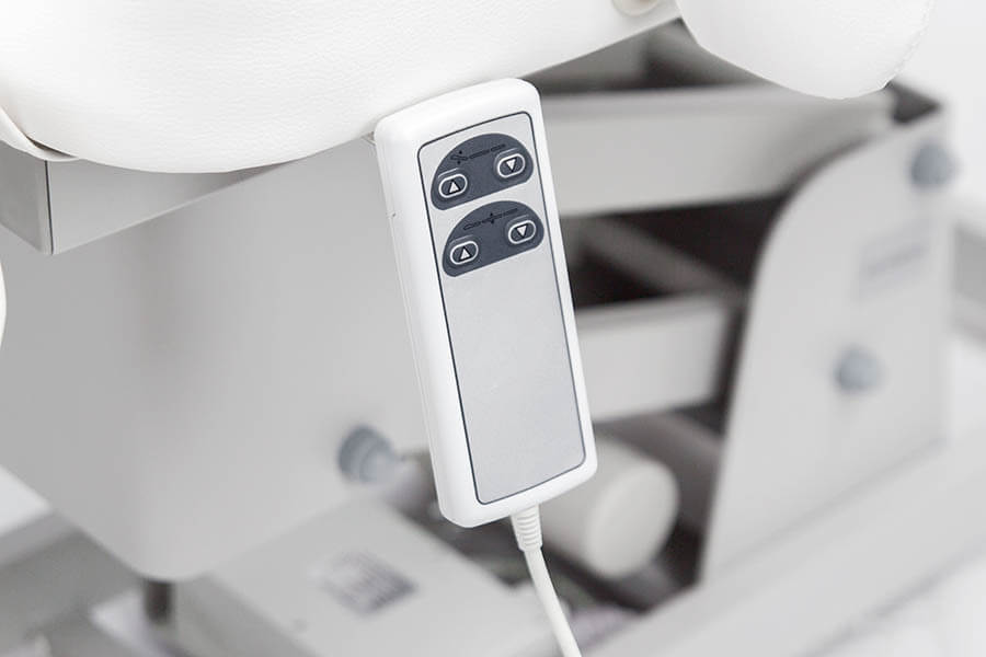 Fotoliul poate fi reglat în poziție orizontală, așa că poate fi utilizat și în masaj, sau alte terapii. Tetiera are un decupaj pentru față acoperit cu un dop din același material. Cotierele pot fi îndepărtate complet, ceea ce permite accesul ușor și confortabil la client.