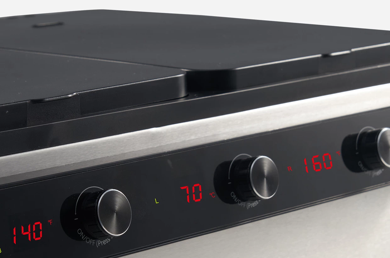 Fiecare dintre butoanele de reglare a încălziri este echipat cu un afișaj digital al temperaturii de încălzire și cu un indicator luminos care indică în mod simplu starea de încălzire: