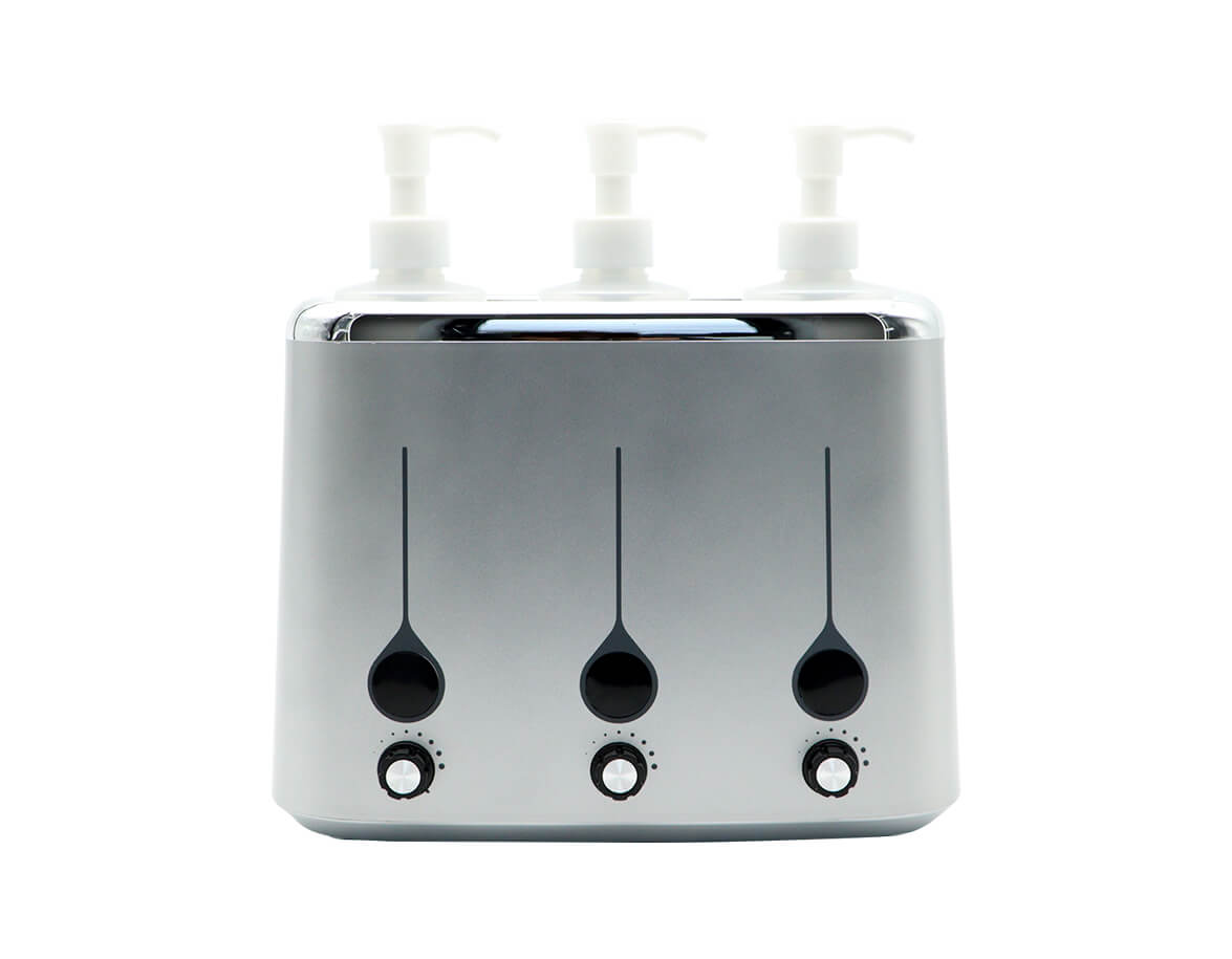 Încălzitorul cu setare individuală a temperaturii, pentru fiecare recipient în parte și trei orificii pentru recipientele de dozare, va asigura încălzirea și menținerea temperaturii selectate a uleiurilor, cremelor și emulsiilor de masaj. Incluse în ambalaj sunt și trei recipiente cu un volum de 240 ml și dozator pentru produsul de masaj, pe care le puteți încălzi simultan în încălzitor.
