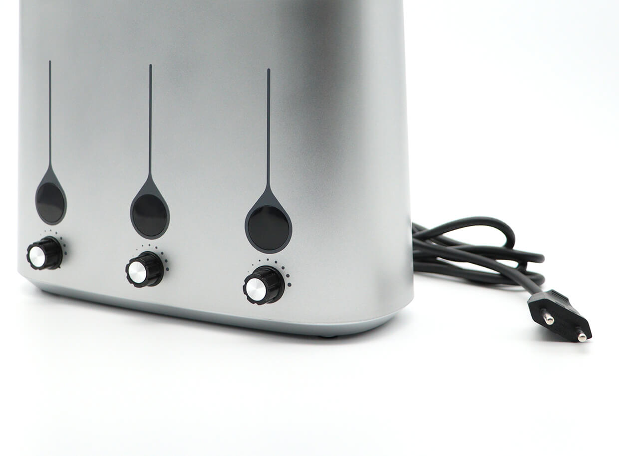 Încălzitorul este fabricat din plastic solid ABS. Are un design modern și este echipat cu elemente de protecție, care împiedică picurarea uleiului în interiorul încălzitorului și în componenetele electrice ale dispozitivului. În partea de jos a fiecărui orificiu, se află un comutator de contact, care activează funcția de încălzire a recipientului. După 8 ore de utilizare, dispozitivul se oprește automat.