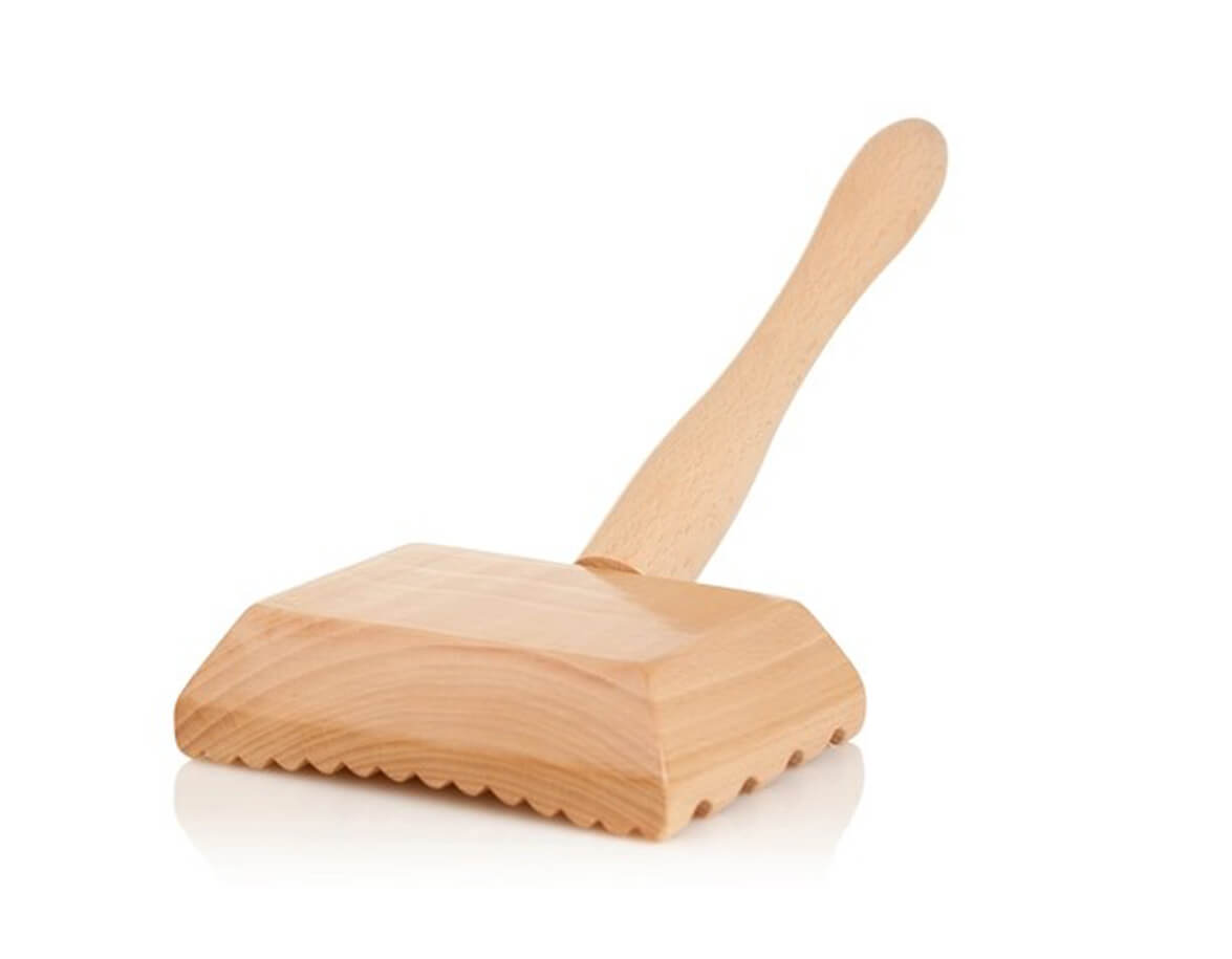 Jumper solid din lemn de fag lăcuit cu cap de masaj de 16,5 x 12,5 cm. Capul de masaj are o suprafață structurată pentru un masaj anticelulitic eficient. Se utilizează pentru masajul zonelor problematice ale corpului cu un procent mai mare de grăsime subcutanată, sau celulită.