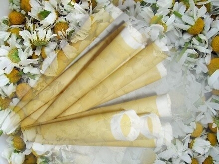 - efecte antiinflamatorii și vindecătoare semnificative: lumânarea (cu mușețel) se aplică pe buric, sau în locul tratat