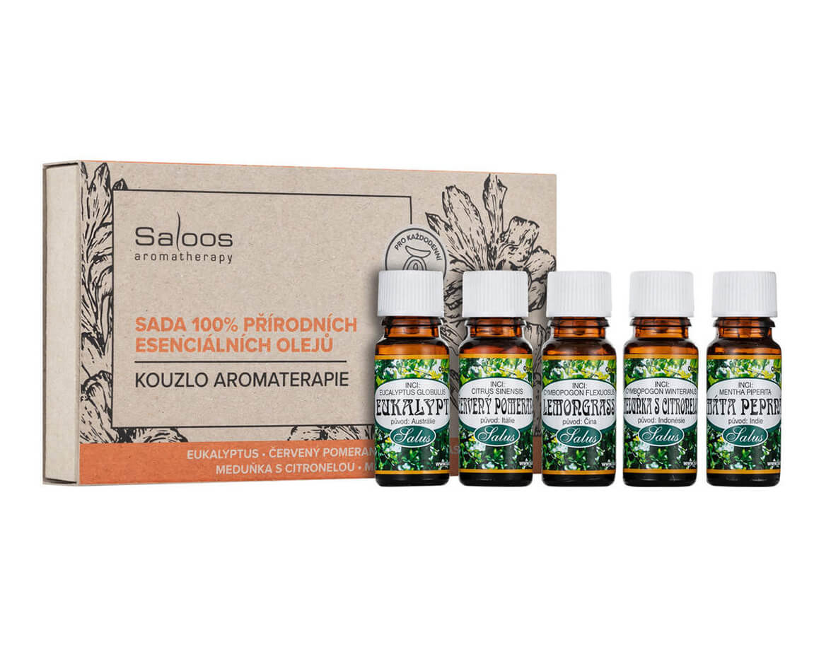 Set Magia aromaterapiei cu o selecție de cinci uleiuri esențiale 100% naturale. Sunt potrivite pentru crearea unei atmosfere mai plăcute, împrospătarea aerului în interior și de asemenea li se acordă credite pentru efectele benefice asupra psihicului și organismului. Susțin relaxarea în timpul procedurilor, le puteți utiliza în saloanele de masaj, sau cele cosmetice, dar și în confortul locuinței.