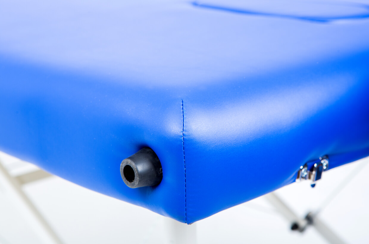 Masa de masaj este tapițată cu imitație de piele moale, de înaltă calitate, de tip ”soft touch” ușor de curățat. Pentru o senzație plăcută a clientului, căptușeala este realizată din spumă cu o grosime de 4 cm cu densitate mare, astfel încât este suficient de confortabilă pentru client. Tetiera este proiectată foarte confortabil, cusăturile sunt așezate astfel încât să nu apese clientul pe față, iar croiul general garantează un sprijin stabil și confortabil al capului. Există, de asemenea, o deschidere pentru față situată direct în structura patului, închisă cu un capac, care poate fi extras cu ușurință dacă este necesar.