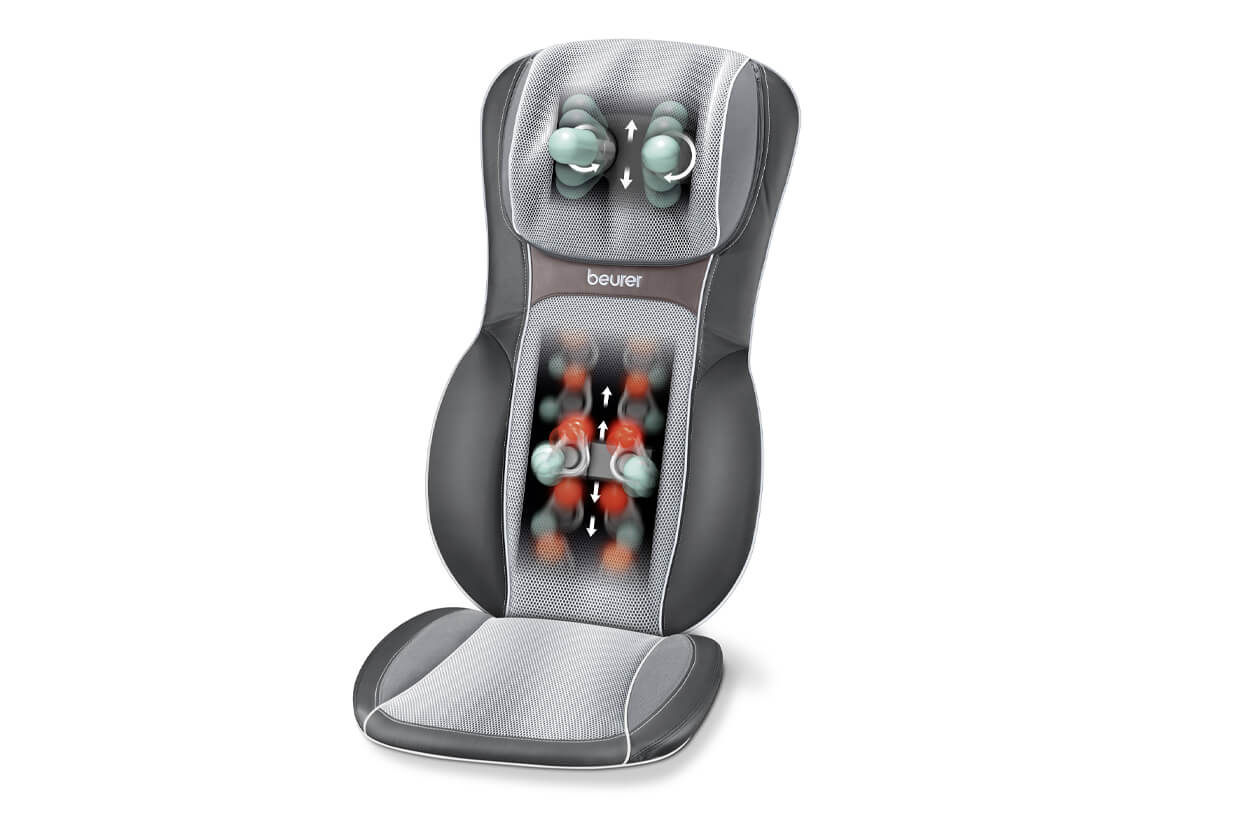Salteaua pentru masaj are o formă ergonomică, ușor de utilizat, puteți alege un masaj profund sau Shiatsu. Are 2 capete de masaj rotative Shiatsu în zona gâtului și 4 capete rotative de masaj Shiatsu pe spate.