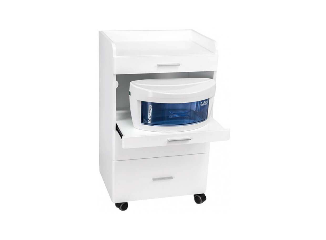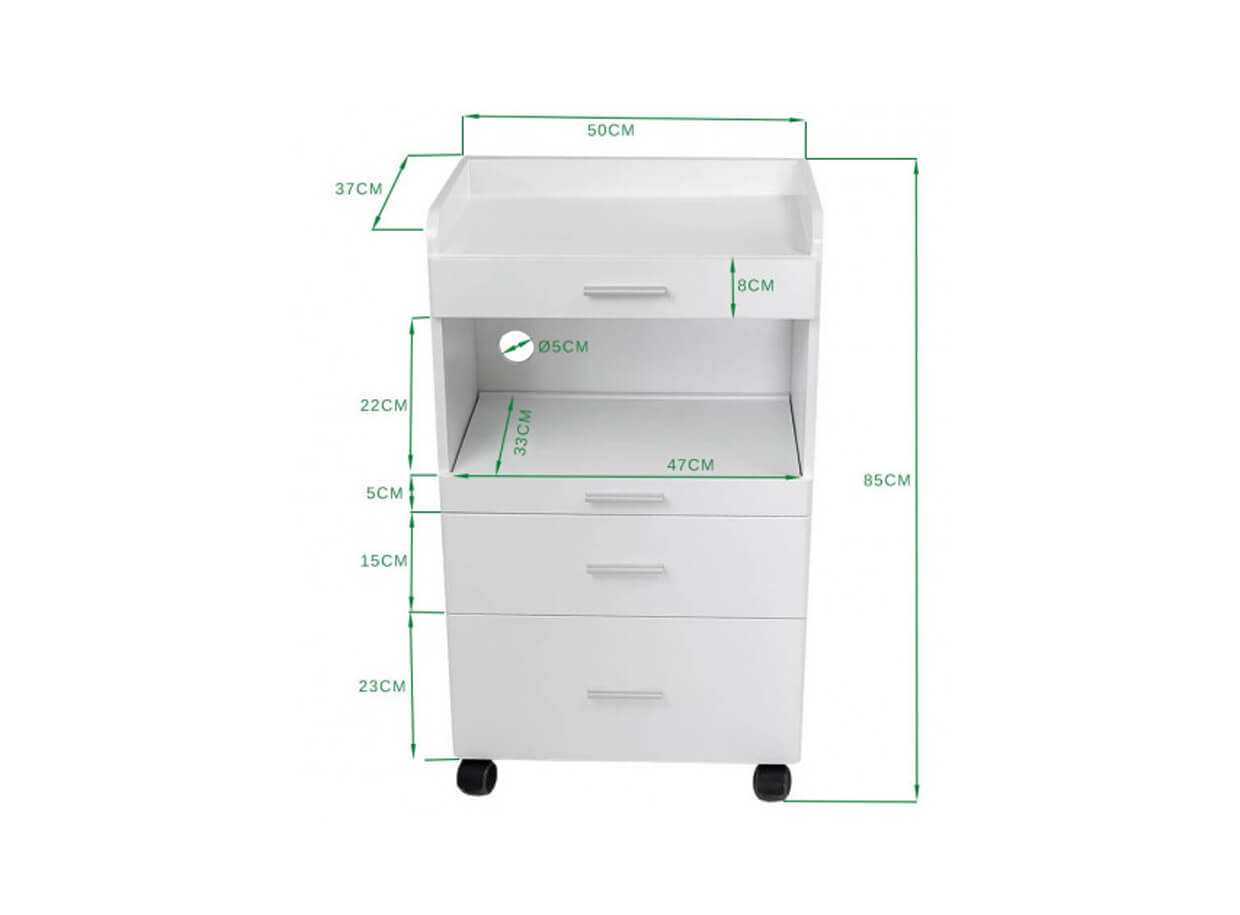 În partea din spate a măsuței există o deschidere pentru cabluri pentru instrumente cosmetice sau sterilizatoare . Măsuța este potrivită în orice salon cosmetic, de masaj, sau fizioterapie.
