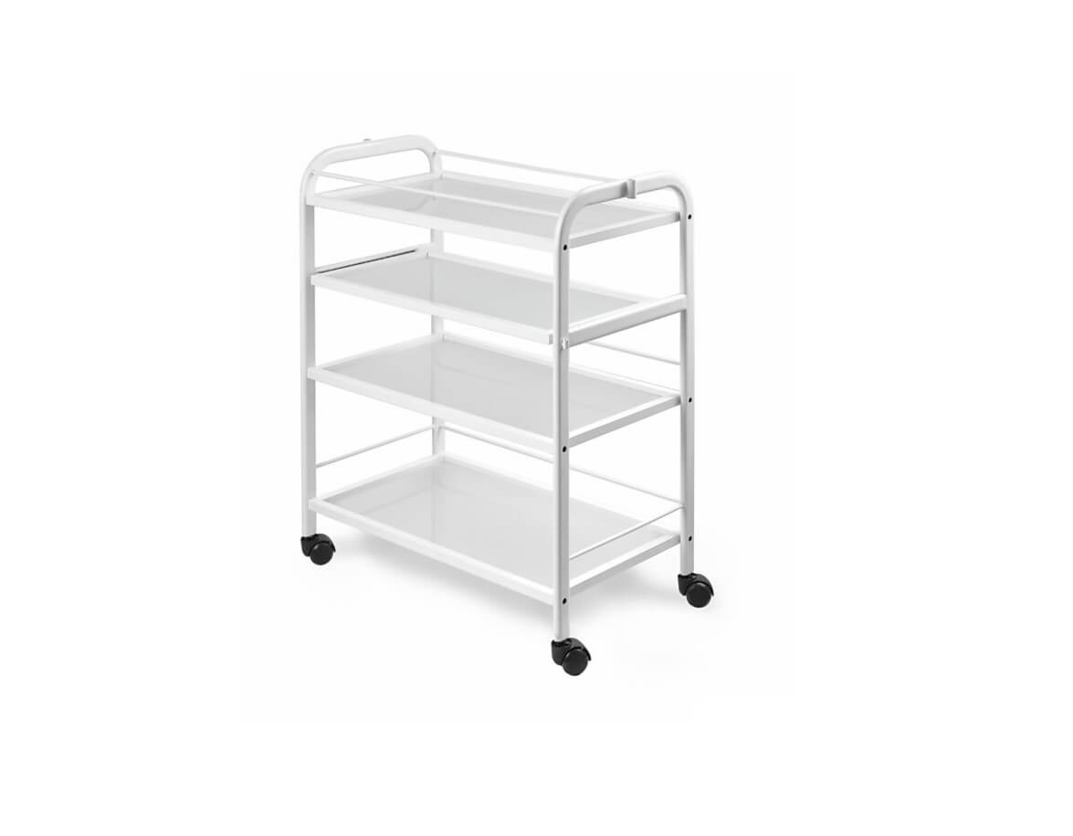 Cadru: metalic, acoperit cu lac alb, 4 roți