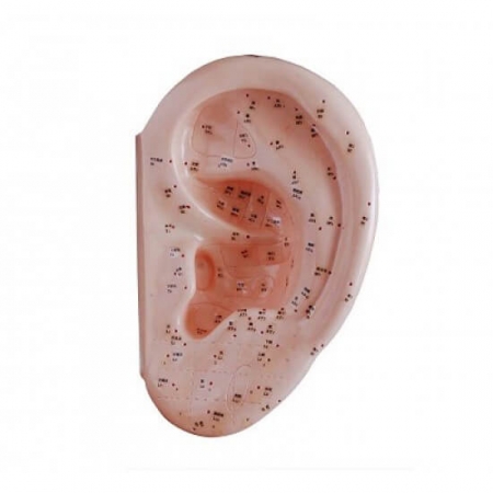 Modelul de acupunctură arată locația punctelor de acupunctură de pe lobul urechii care reflectă organele interne relevante și părțile corpului uman. O broșură care descrie aceste puncte este atașată modelului. Fabricat din plastic fin din PVC.