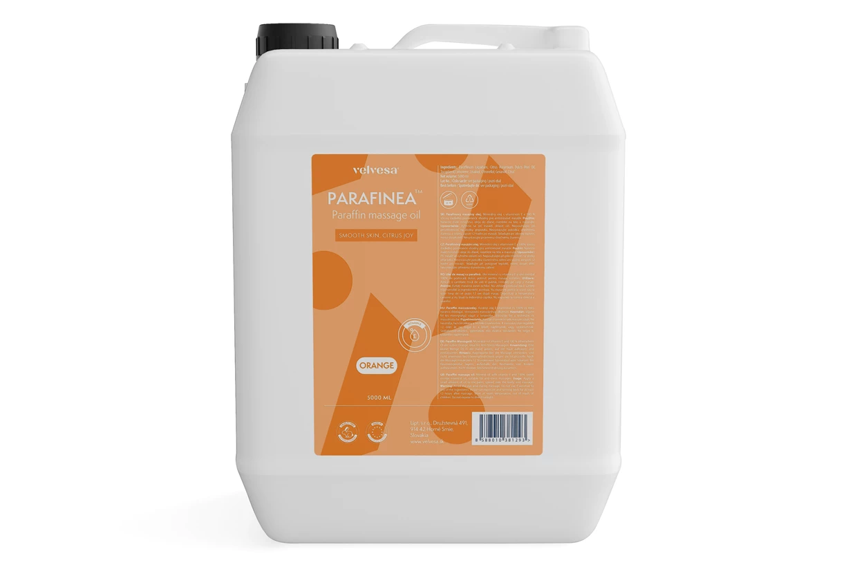 Uleiul de masaj Parafinea Orange de la Velvesa este un ulei de masaj cu efect revigorant asupra stării de spirit și psihicului, care catifelează, tratează și tonifiază pielea. Conține doar ulei de parafină pur cu adaos de vitamina E naturală și ulei esențial 100% din coajă de portocală dulce. Fără parfumuri sau conservanți artificiali.