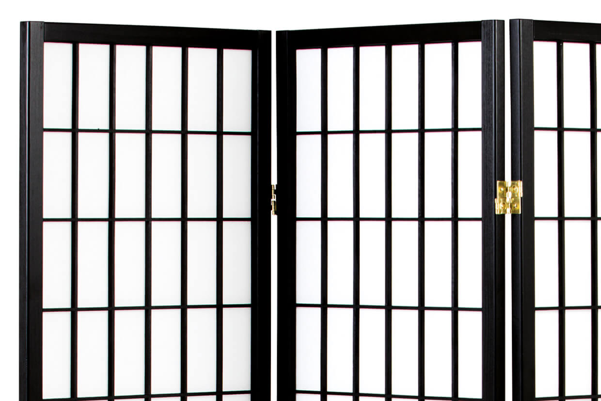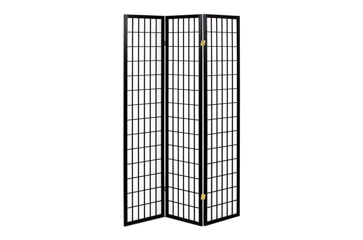 Paravan modern din trei elemente, cu o structură din lemn realizată din molid solid într-o culoare negru.