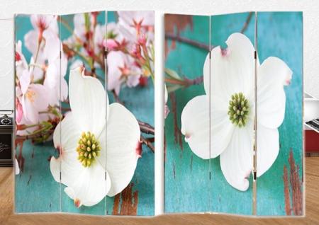 Paravan din 3 piese Flori de sakura cu imprimeu foto pe ambele părţi.