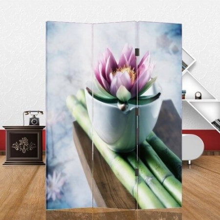 Paravan din 3 piese Nufăr cu imprimeu foto pe ambele părţi.