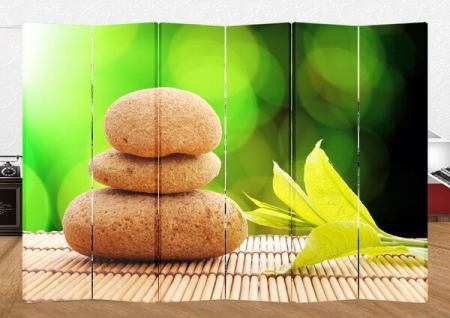 Paravan din 6 piese Piatră de nisip şi frunză cu imprimeu foto pe ambele părţi.