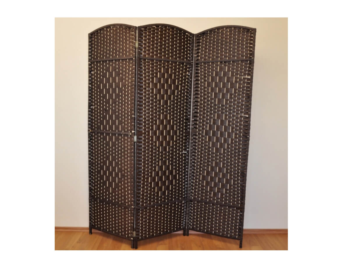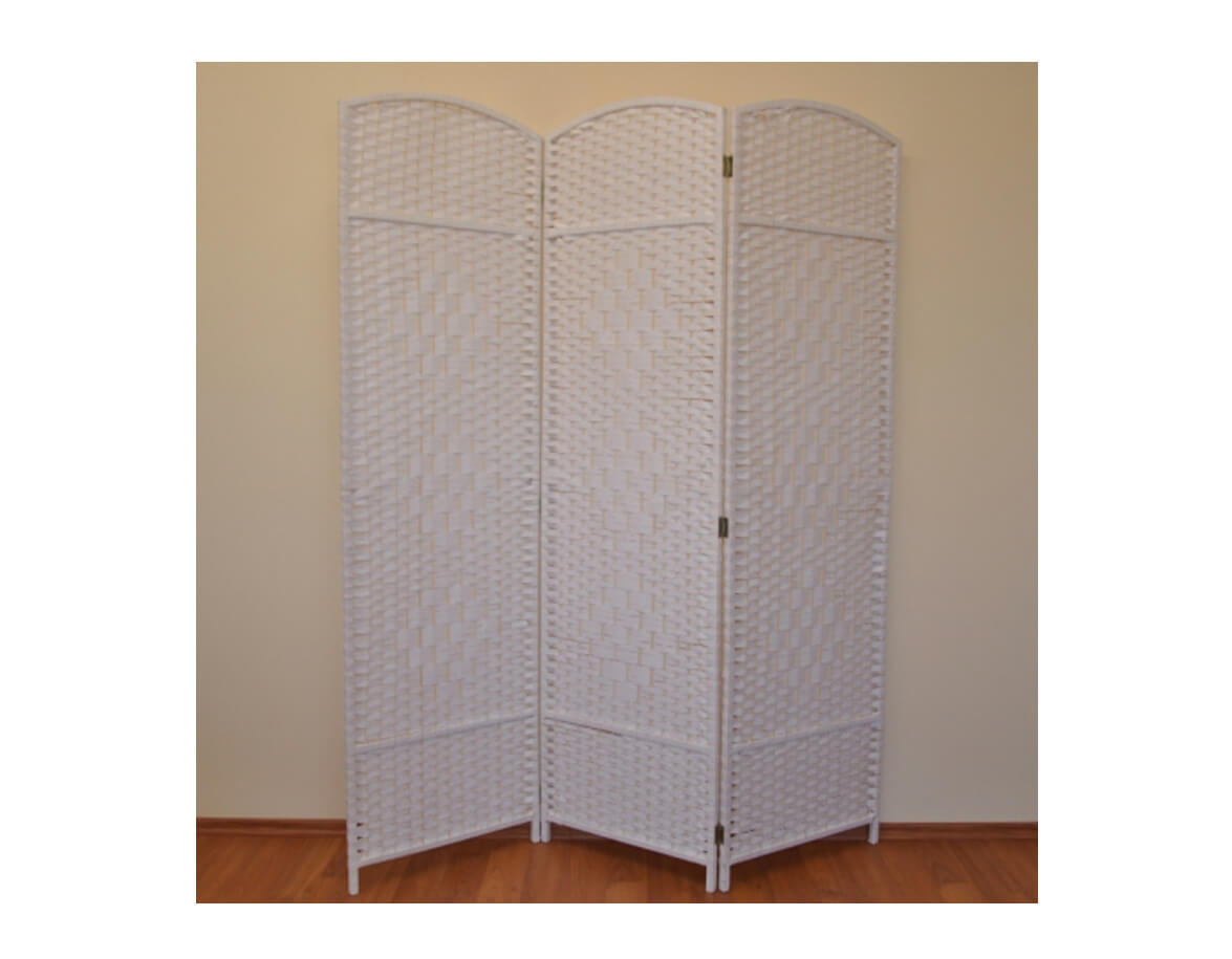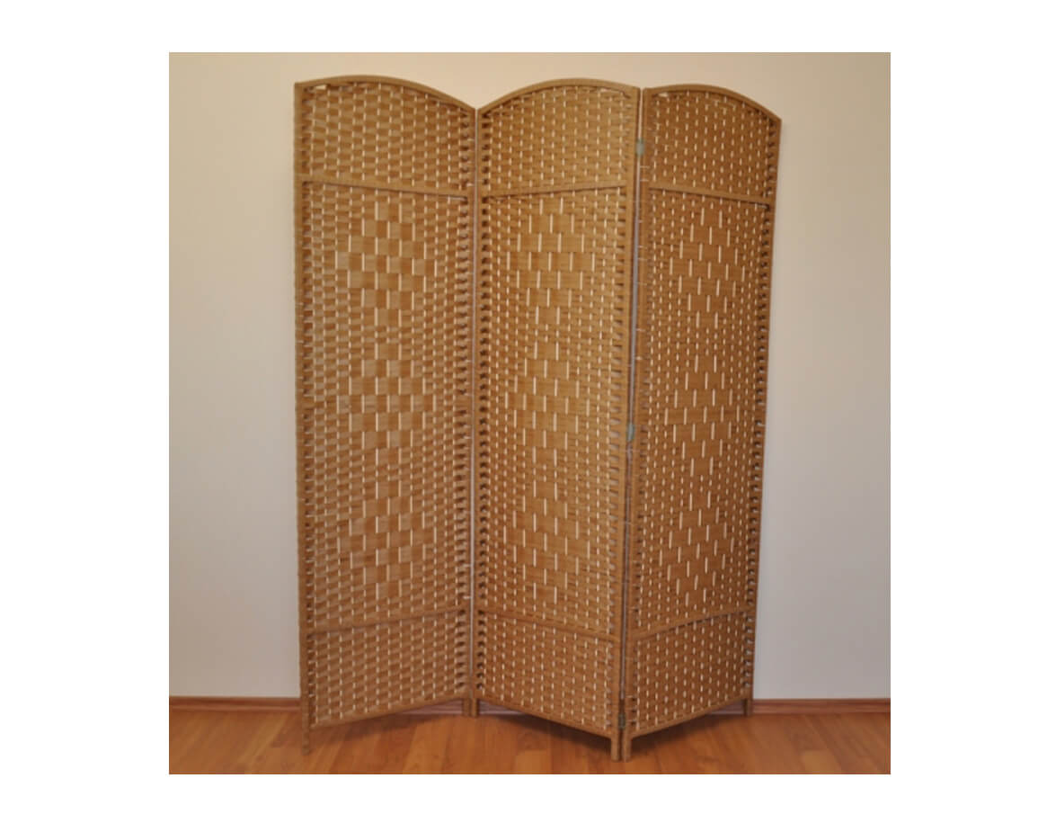 Structura din trei piese este realizată din lemn, completată cu împletitură de hârtie. Împletitura din paravan, creează o structură geometrică discretă și are o culoare neutră. Aspectul plăcut și natural al paravanului se potrivește perfect în spațiul salonului dvs de masaj, al biroului, sau acasă.