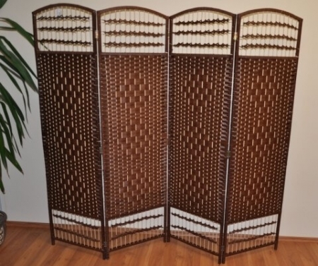 Paravan cu dimensiuni mai mari, cadru de lemn, cu împletituri din sfori din iarbă de mare, într-o nuanță maro.