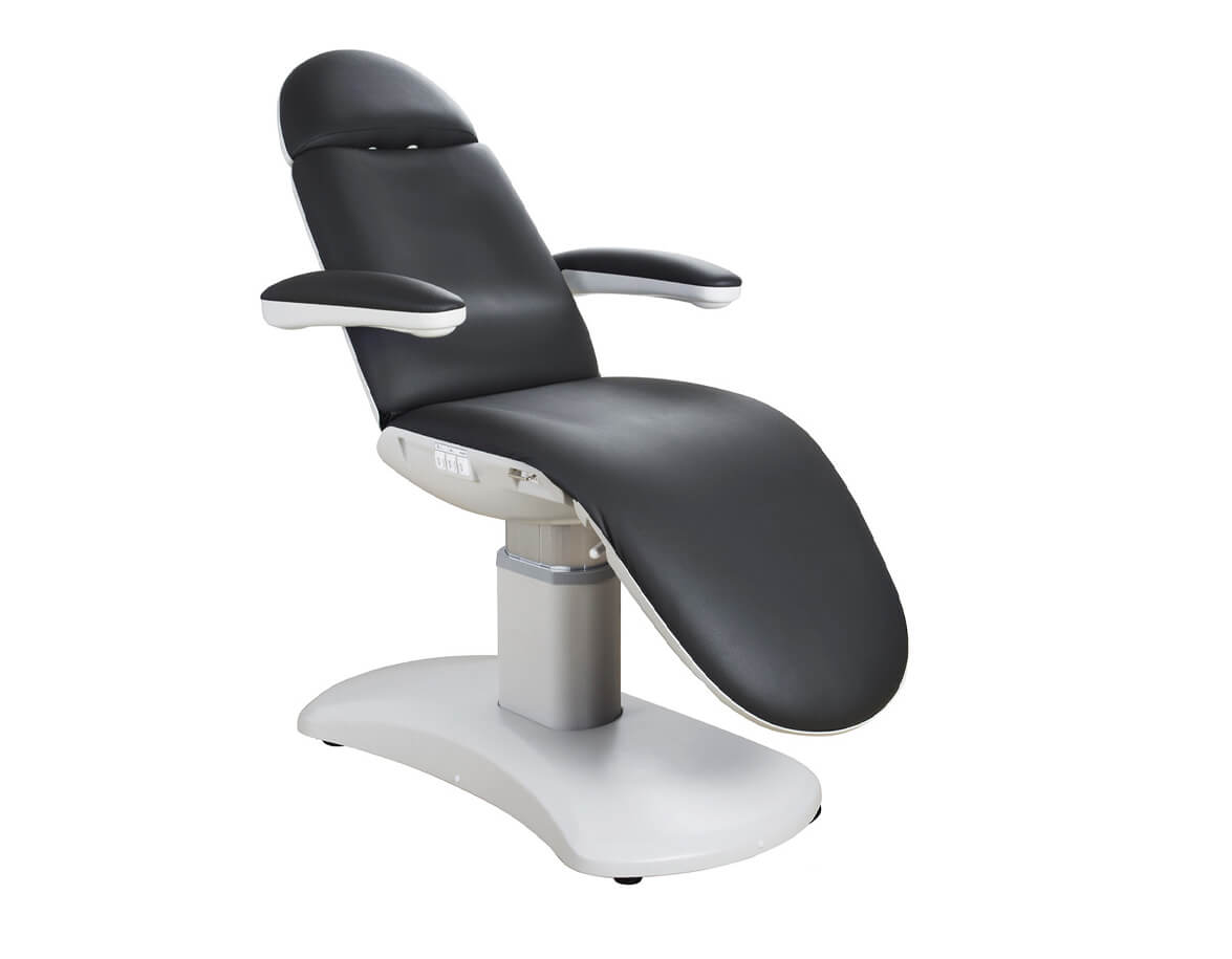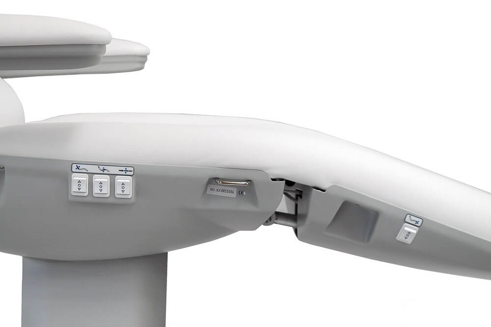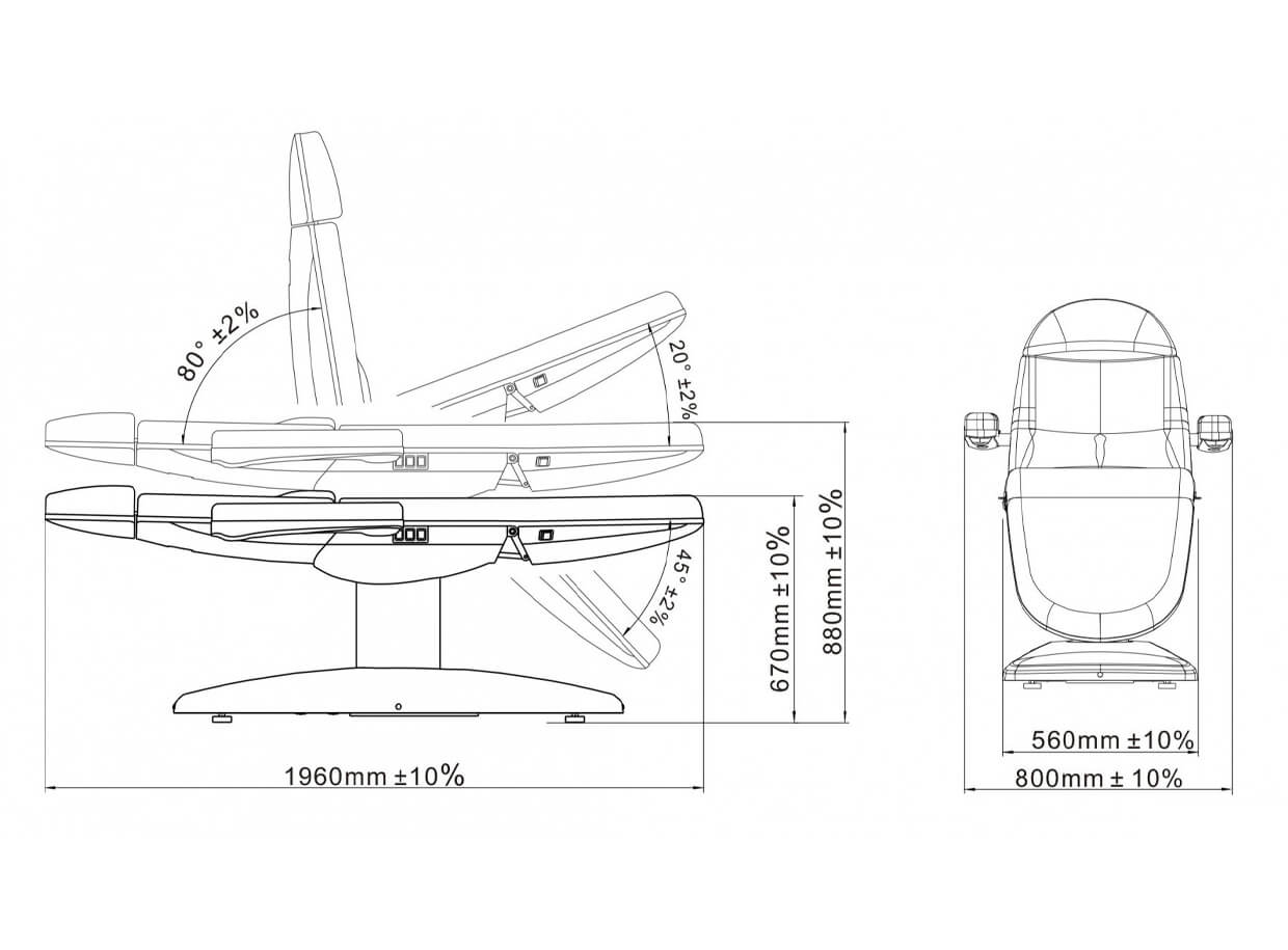Tetiera este extensibilă adaptându-se astfel și la o statură mai înaltă. Cotierele pliabile permit accesul ușor la client. Patul este tapițat cu piele sintetică durabilă, cu întreținere și curățare ușoară . Căptușeala de formă anatomică garantează o ședere confortabilă.