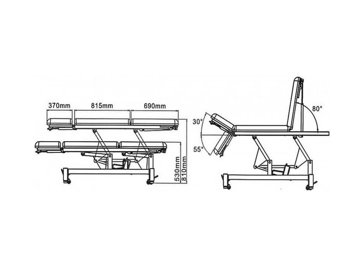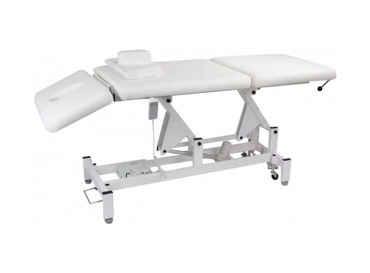 Pat electric pentru masaj cu mai multe posibilități de reglare a poziției potrivit pentru kinetoterapeuți, maseuri și cosmeticiene.