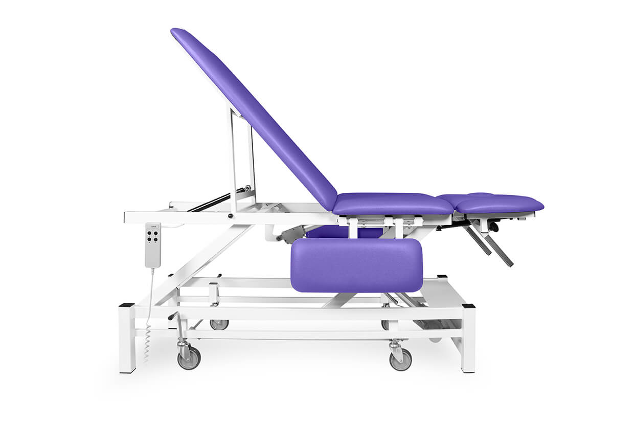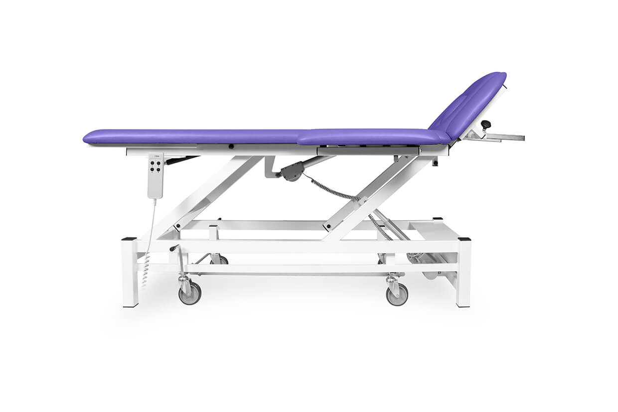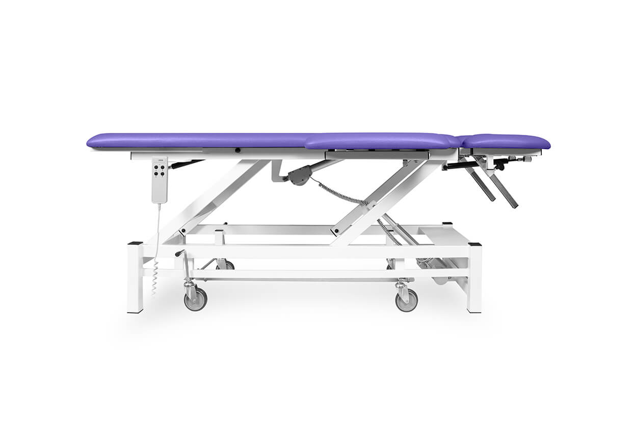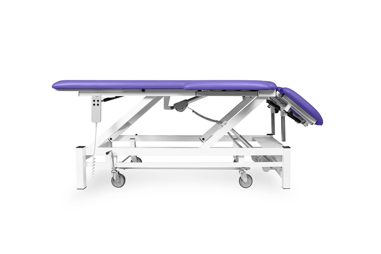 Pat profesional electric, reglabil, din trei elemente, cu un motor fiabil și silențios, potrivit pentru maseuri și fizioterapeuți. Patul este tapițat confortabil cu spumă de 4 cm grosime și imitație de piele de înaltă calitate, ușor de curățat și echipat cu piciorușe antiderapante reglabile. Partea superioară și cea inferioară (ridicare în V) ale patului pot fi poziționate cu ajutorul picioarelor telescopice. Prețul patului include telecomanda.