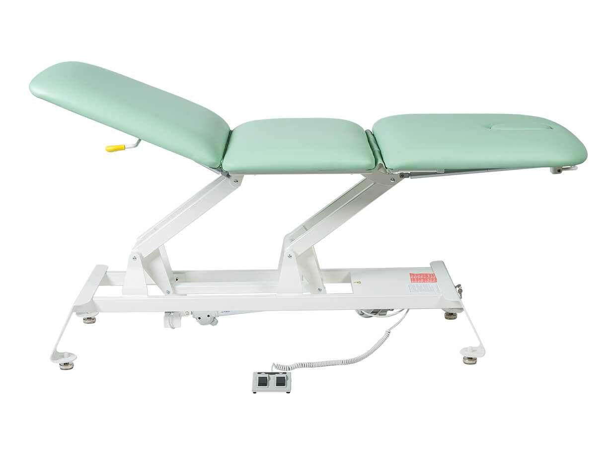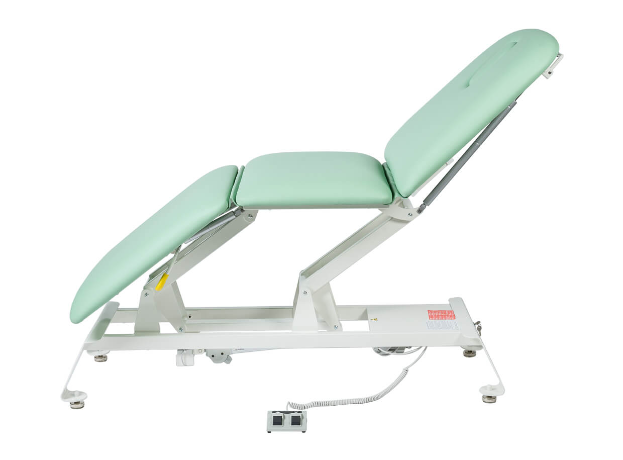 Pat electric, modern, din trei piese, cu înclinare reglabilă a tetierei și a picioarelor. Datorită variabilității sale este potrivit nu doar pentru masaj, dar și pentru kinetoterapeut, în salonul cosmetic, sau ca pat de examinare în cabinetul medicului.