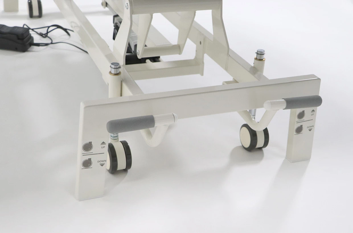 Reglarea înălțimii necesare a patului este foarte ușoară. Pedala are două butoane plasate unul în spatele celuilalt, unul pentru ridicare și celălalt pentru coborâre. Controlul cu picioarele este mai practic, nu trebuie să țineți telecomanda cu mâinile unse de la produsul de masaj. Un motor silențios și puternic ridică patul din poziția cea mai joasă de 51 cm, până la o înălțime de 95 cm, ceea ce este avantajos pentru maseurii mai înalți.