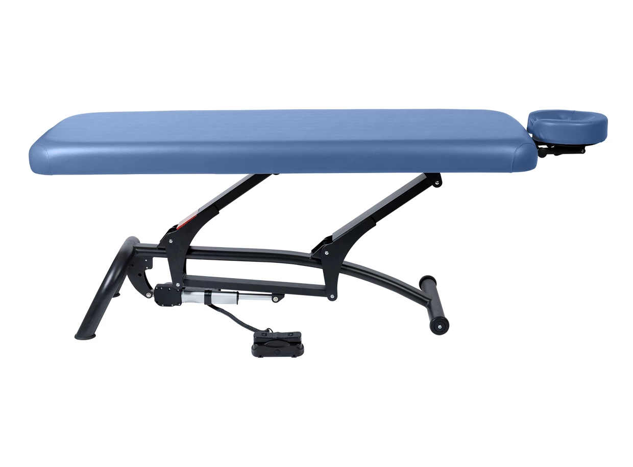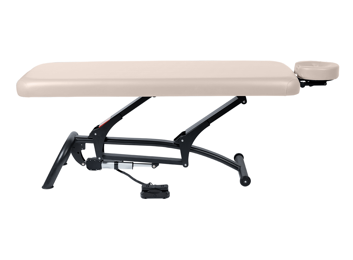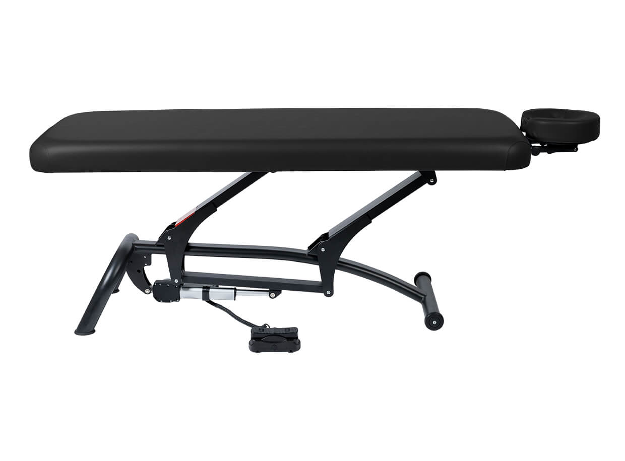 Motorul pentru ridicarea patului situat în partea inferioară a structurii funcționează liniștit și fiabil și are o capacitate de încărcare de până la 200 kg. Permite coborârea patului până la 44 cm, ceea ce este util pentru clienții mai scunzi și pentru cei cu probleme de mobilitate. Înălțimea maximă de 94 cm este suficientă pentru confortul de lucru chiar și pentru maseuri înalți.