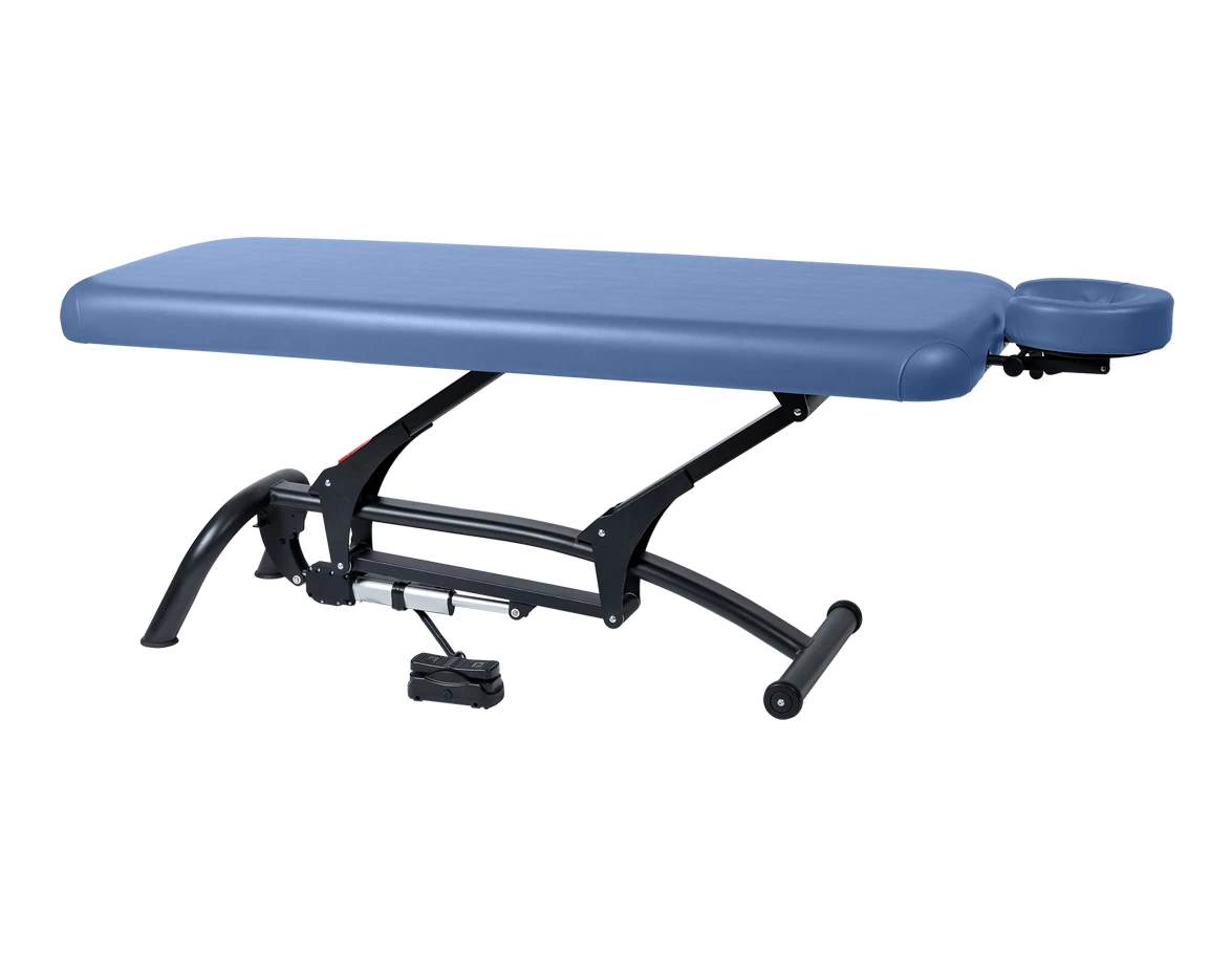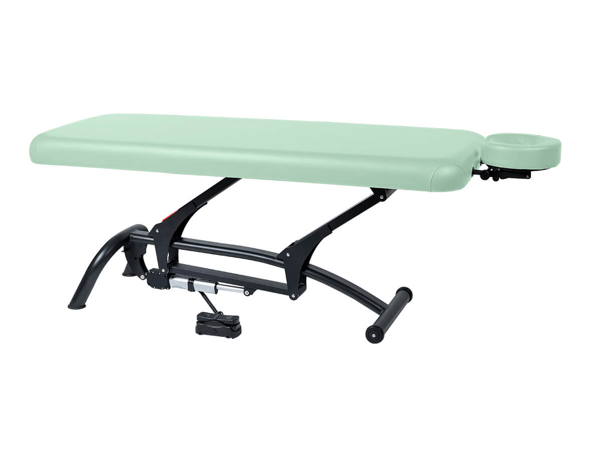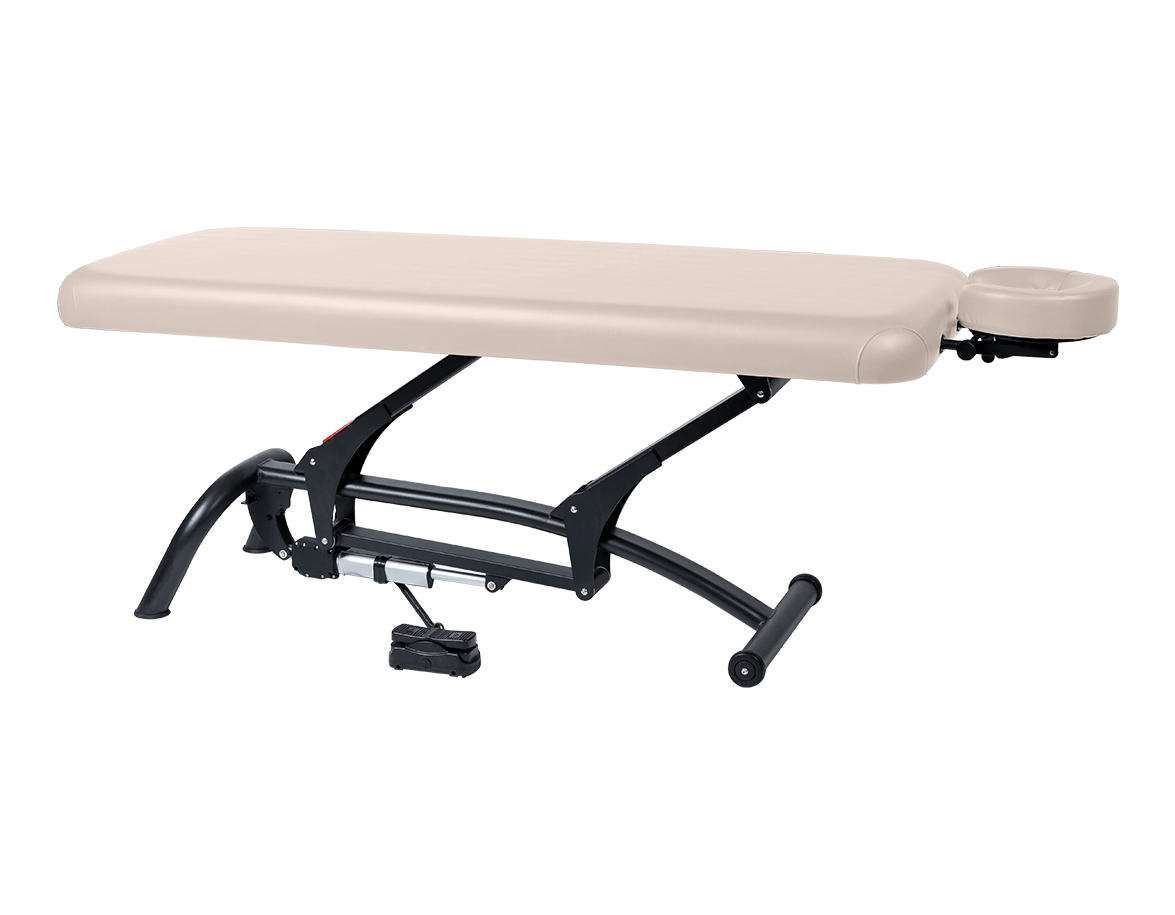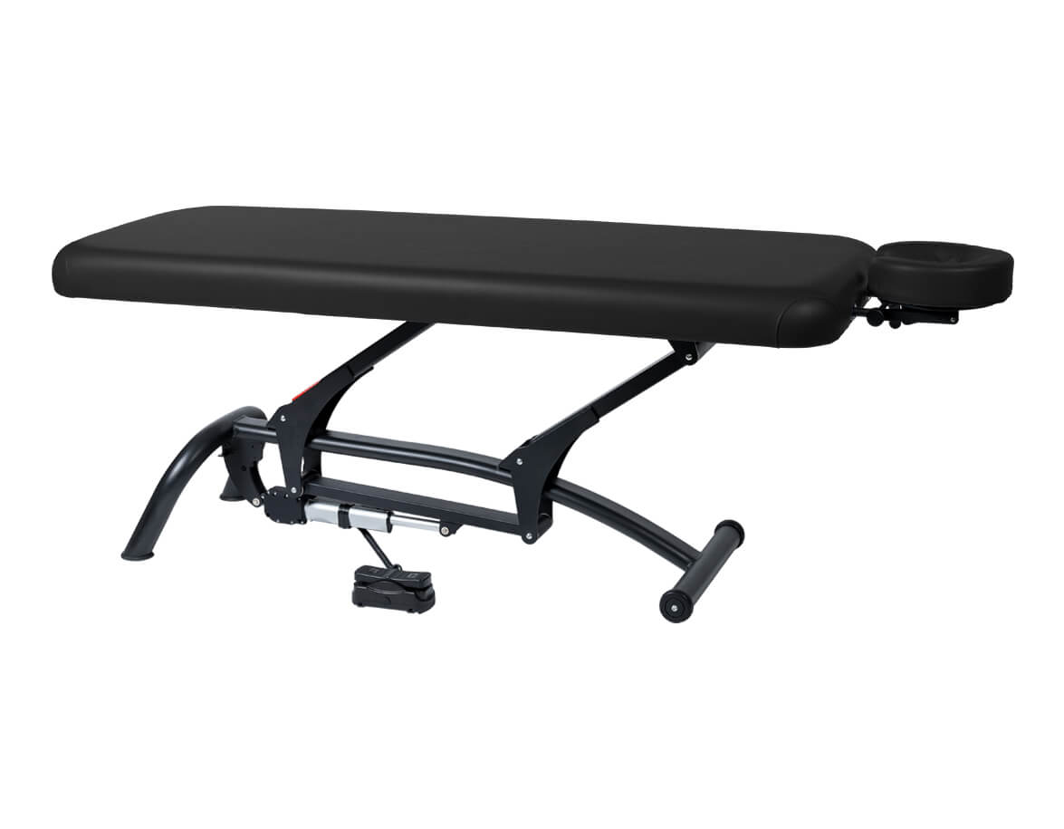 Motorul pentru ridicarea patului situat în partea inferioară a structurii funcționează liniștit și fiabil și are o capacitate de încărcare de până la 200 kg. Permite coborârea patului până la 44 cm, ceea ce este util pentru clienții mai scunzi și pentru cei cu probleme de mobilitate. Înălțimea maximă de 94 cm este suficientă pentru confortul de lucru chiar și pentru maseuri înalți.