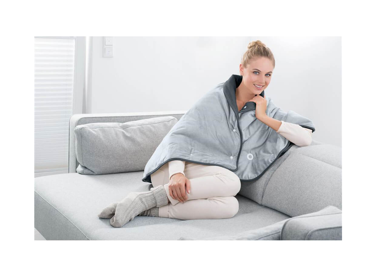 Pelerinia electrică încălzitoare este moale și plăcută la atingere. Nasturii practici permit ca pelerina să fie fixată în jurul gâtului și a umerilor ca un șal pentru partea superioară a corpului sau poate fi utilizată ca o pătură pentru a încălzi partea inferioară a corpului. Creează o atmosferă caldă, confortabilă și asigură o odihnă relaxantă și sigură.
