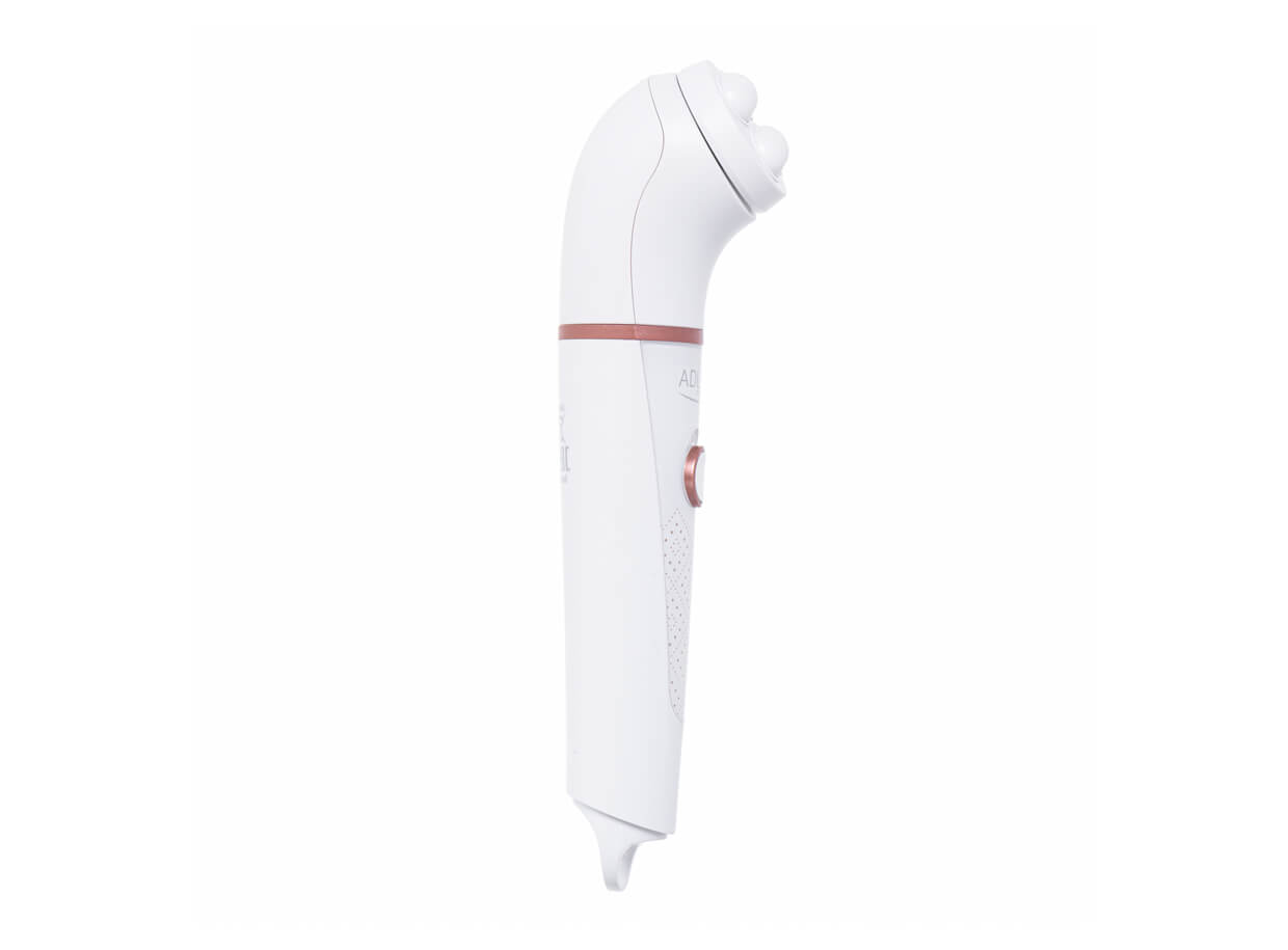 Perie de curățare cu trei capete interschimbabile, pentru demachiere, peeling și masaj, precum și pentru aplicarea serumului, sau a cremei regeneratoare.