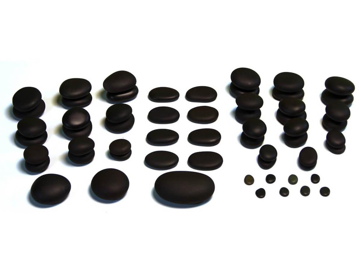 Pietre de bazalt şlefuite natural colectate pe plajele din America de Sud. Originea vulcanică oferă pietrelor de lavă o capacitate mare de stocare a căldurii. Pietrele individuale sunt originale formate de ocean şi pot fi între ele mici diferenţe de nuanţe după mineralele pe care le conţin.