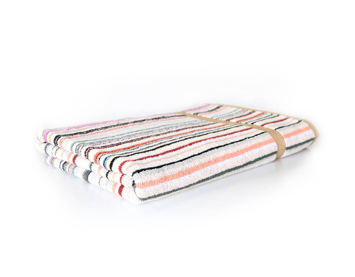 Prosopul este realizat din material frote, din 100% bumbac. Datorită acestui fapt are o durată de viață lungă, absoarbe bine, se usucă rapid și este moale la atingere. Întreaga suprafață a prosopului are un model în dungi în culori diferite. Fiecare dintre ele are o combinație originală de culori.