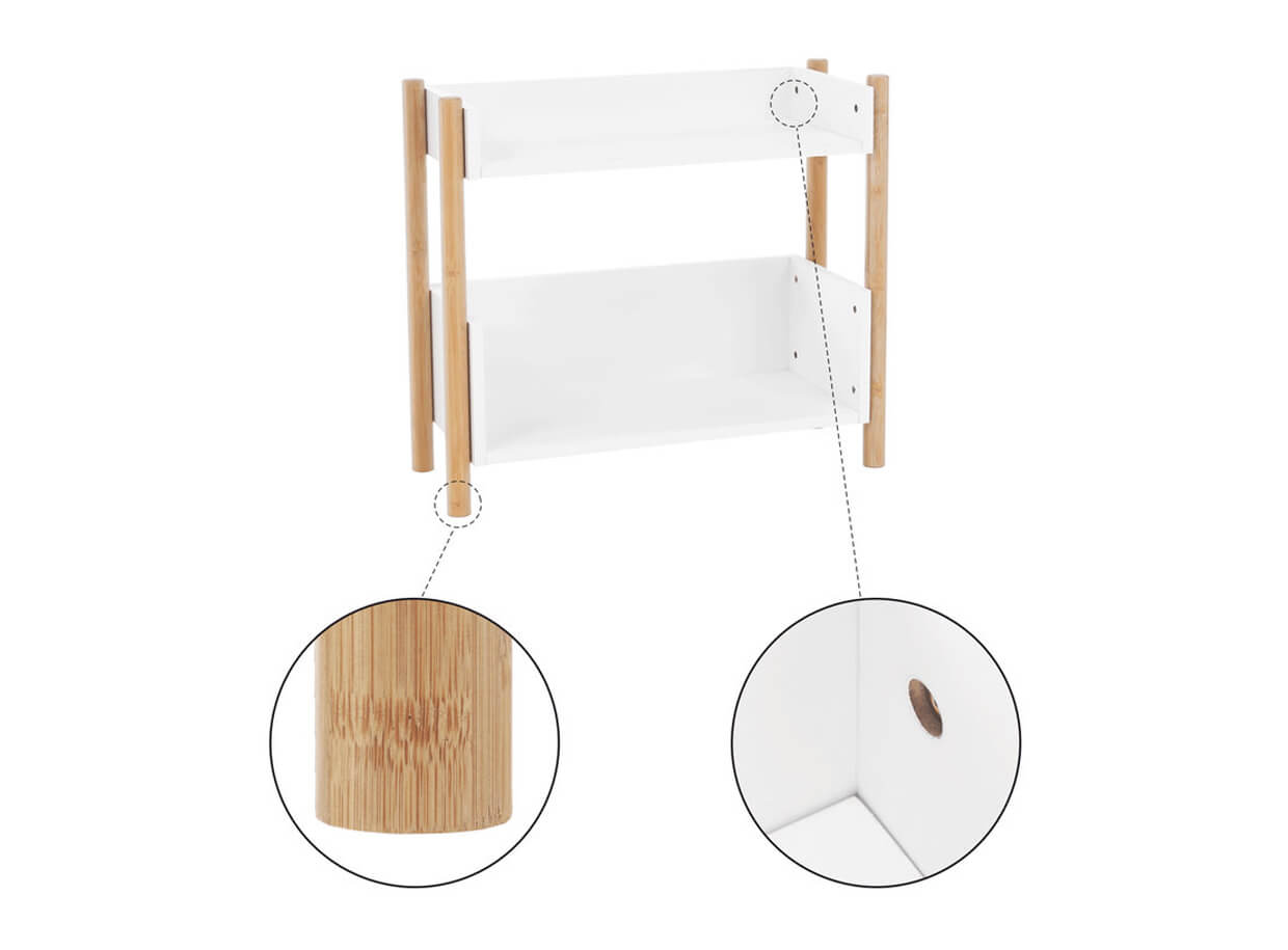 Raftul BALTIKA are un design natural, minimalist, potrivit pentru orice salon de masaj, sau cosmetică, cabinet medical, sau acasă. Este compus din două rafturi din pal și structură din bambus lăcuit.