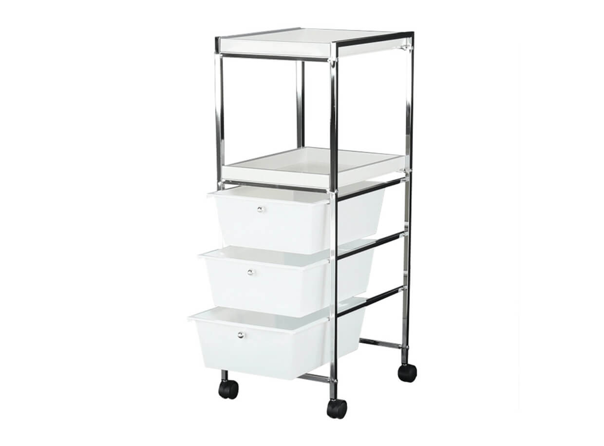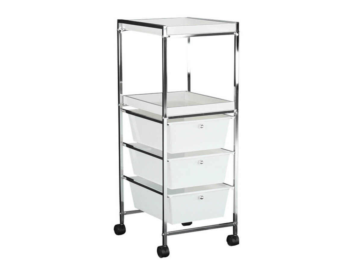 Raftul mobil practic Corfu, este un ajutor potrivit pentru orice salon de masaj, cosmetică, sau terapie, în cabinete, dar și acasă.