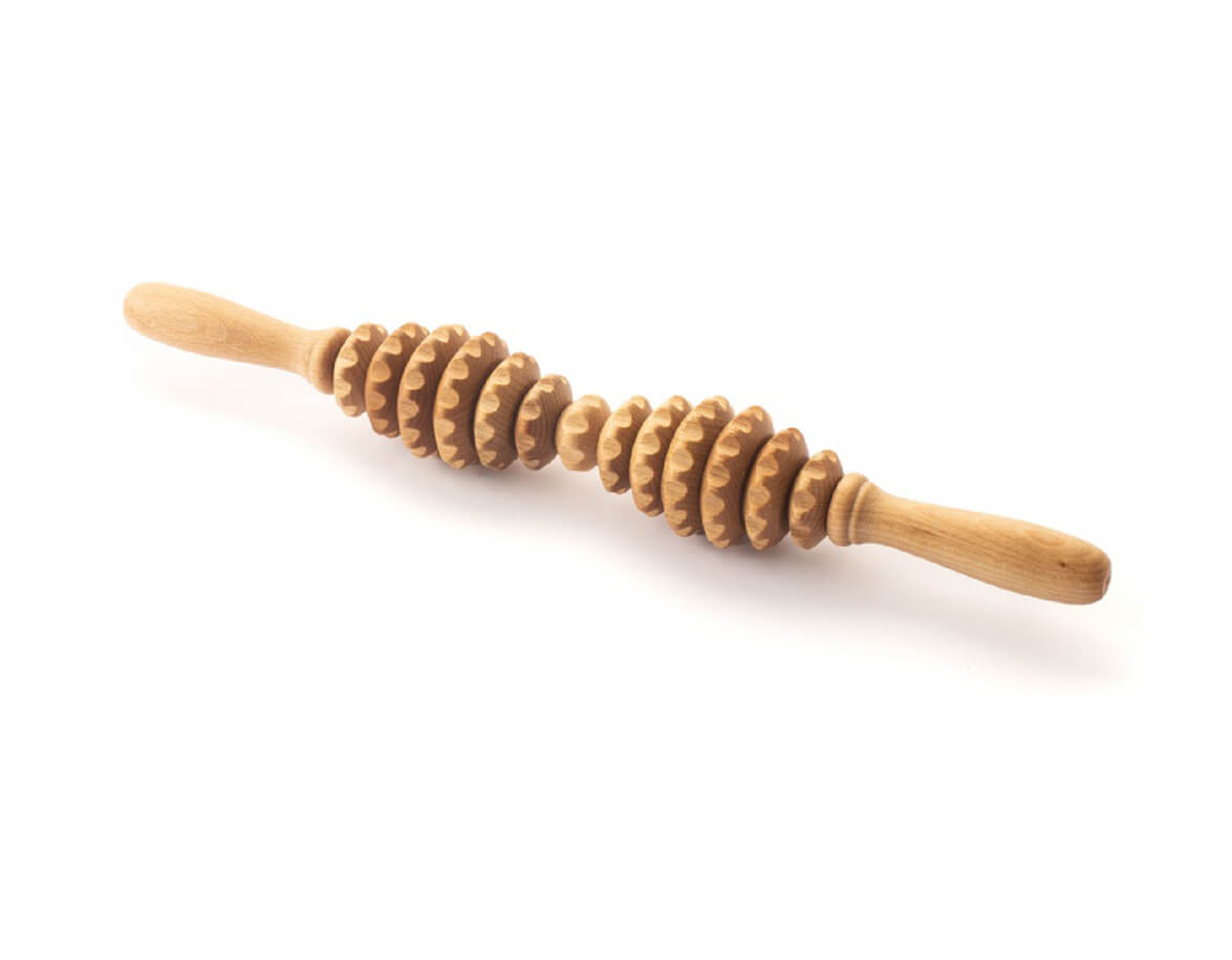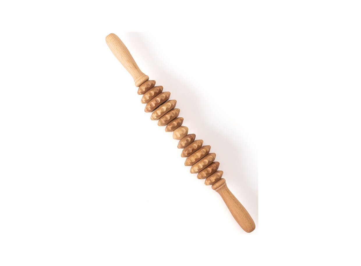 Rola pentru masaj este compusă din 13 roți dințate de diferite dimensiuni din lemn de fag. Mânerele bine formate se potrivesc perfect în palme. Rola este potrivită pentru tratarea părților problematice ale corpului cu un strat mai mare de grăsime subcutanată, celulită și piele lăsată.