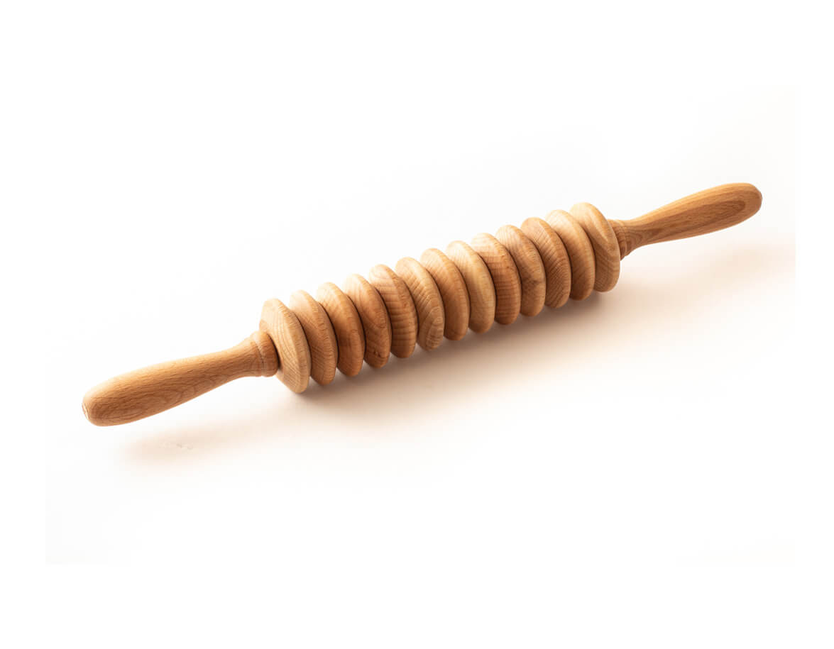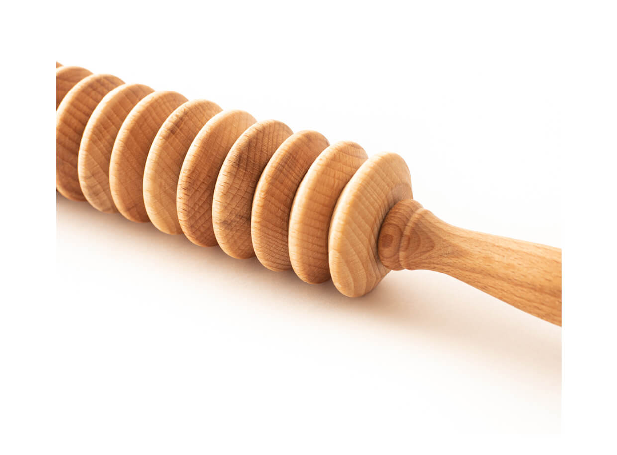 Rola pentru masaj este compusă din 13 discuri din lemn de fag. Mânerele bine formate se potrivesc perfect în palme. Rola este potrivită pentru tratamentul prin masaj al părților problematice ale corpului cu celulită, un strat mai mare de grăsime subcutanată și piele lăsată.