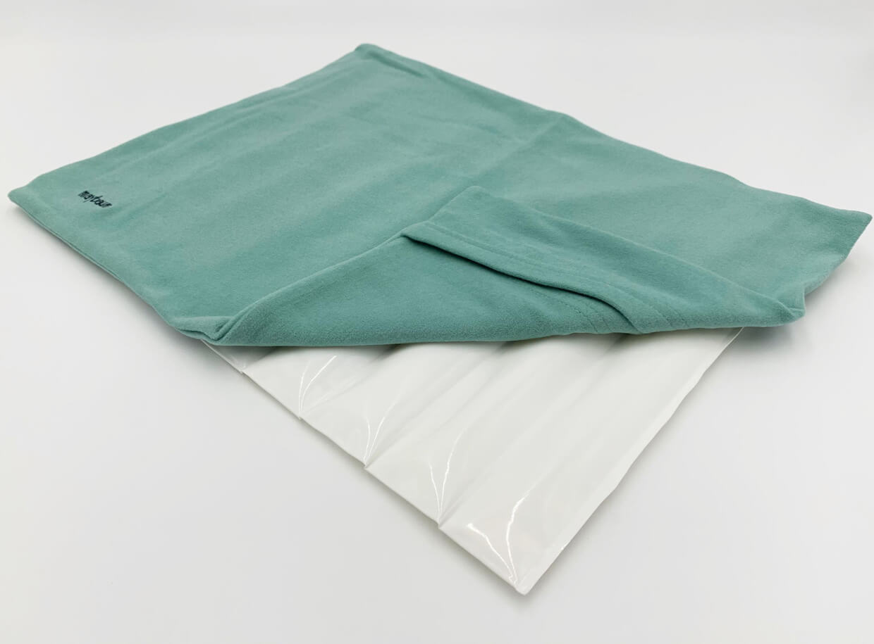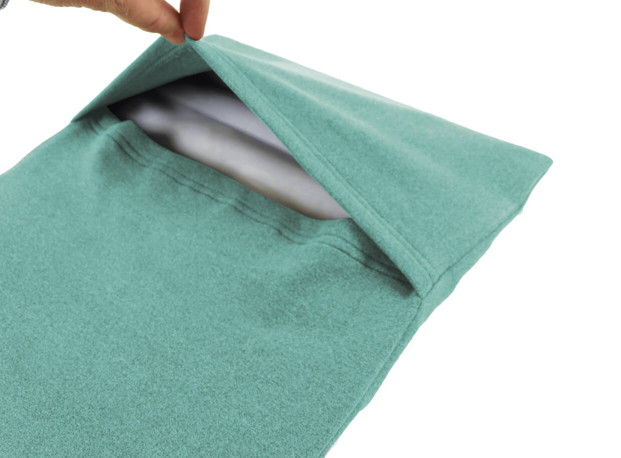 Se adaptează perfect oricărei părți a corpului, după cum este necesar, o puteți așeza direct pe, sau puteți înfășura cu aceasta, locurile supraîncălzite și dureroase de pe corp. Husa textilă pentru salteaua de răcire “Second Skin” este confecționată dintr-o țesătură netedă, care este plăcută și confortabilă. Poate fi spălată la mașina de spălat.