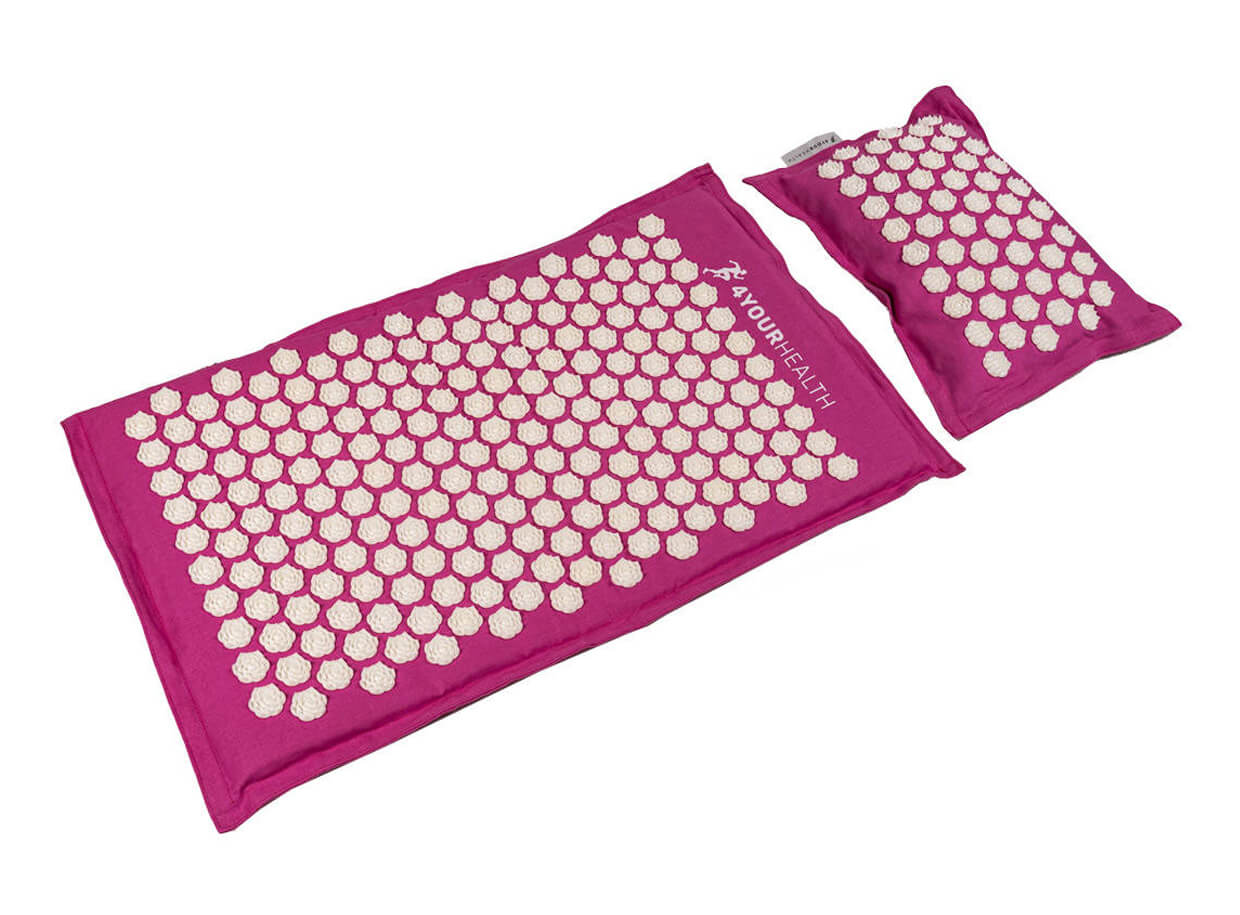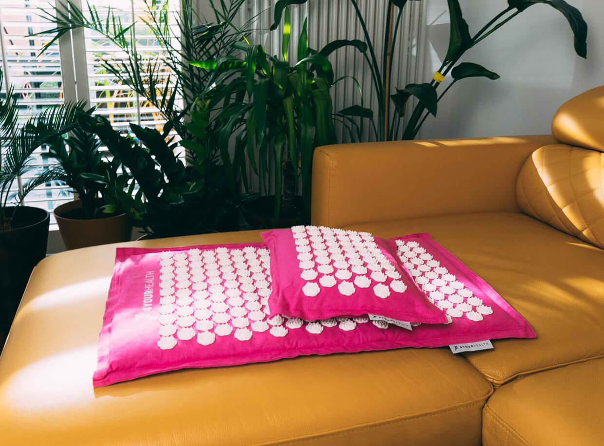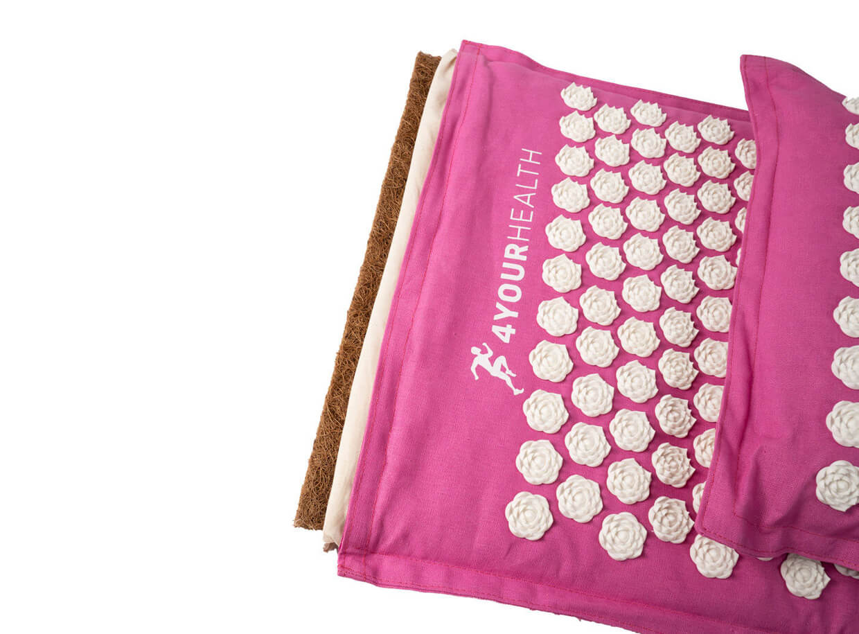 Saltea și pernă de presopunctură ecologice cu rozete circulare pentru masajul punctelor de presopunctură. Asigură relaxare completă pentru corp și minte și susțin regenerarea întregului organism.