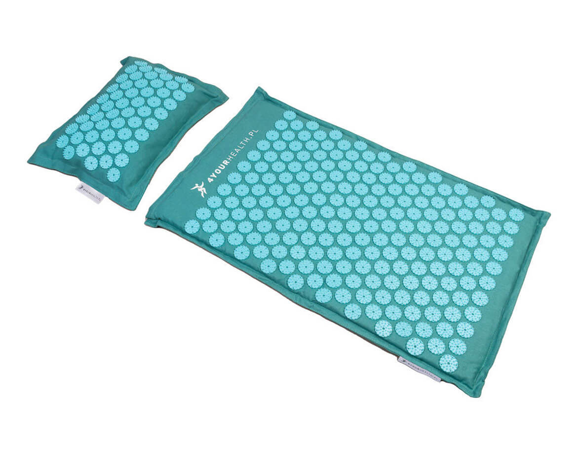 Saltea și pernă specială cu proeminențe pentru masaj, care stimulează punctele de presopunctură, susțin tratarea diferitelor probleme de sănătate și contribuie la relaxarea completă a întregului organism.