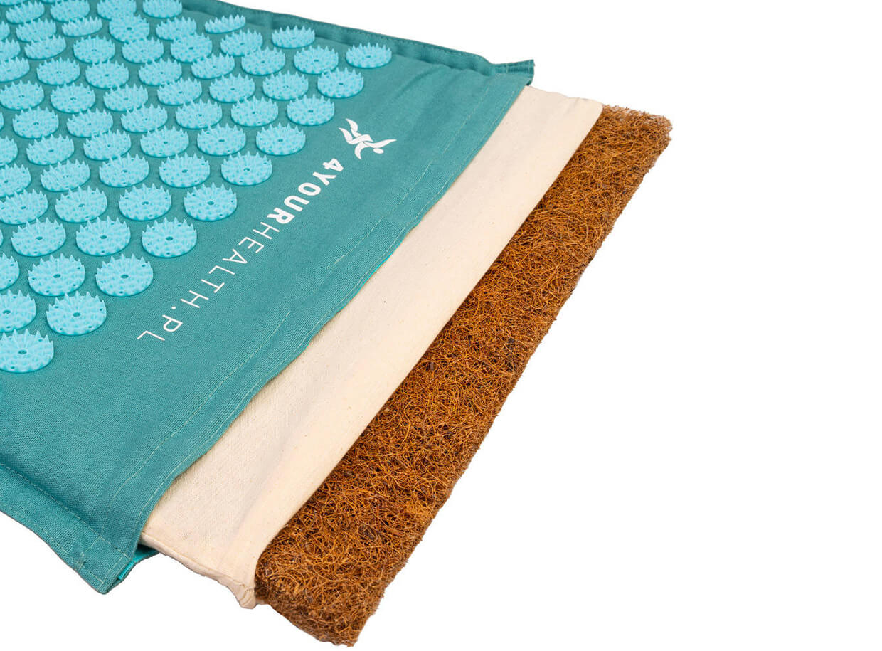 Atât salteau cât și perna pentru presopunctură sunt fabricate din materiale ecologice. Umplutura moale a saltelei este formată din fibre de cocos, împiedică absorbția umiditații și menține salteaua curată din punct de vedere igienic. Perna este umplută cu coji de hrișcă, așa că se adaptează perfect formei gâtului și a cefei pentru tratarea eficientă a acestei zone. Husa ambelor accesorii pentru masaj, este realizată dintr-un in natural plăcut, rezistent la umiditate, care se usucă rapid, reglează schimbul de căldură dintre piele și aer și este atent la pielea sensibilă.