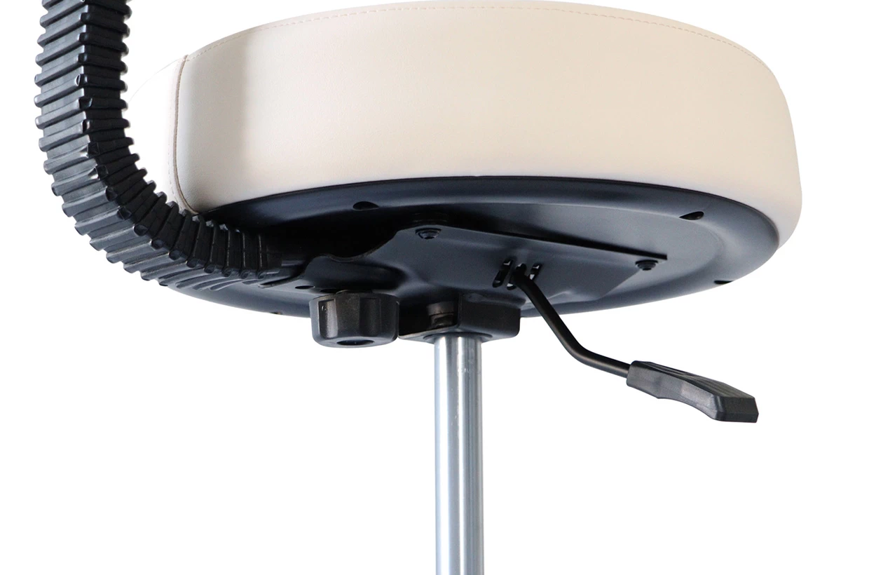 Reglarea înălțimii 47 – 63,5 cm este lină, cu ajutorul manetei de sub șezut, care controlează pistonul pneumatic. Diametrul părții circulare a scaunului este de 39 cm, permițând statul confortabil și sigur, deoarece scaunul are o srcină maximă de până la 120 kg.