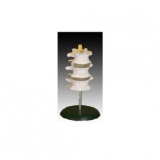 Modelul pe suport prezintă vertebre lombare cu discuri intervertebrale și măduva spinării cu rădăcinile nervilor spinali.