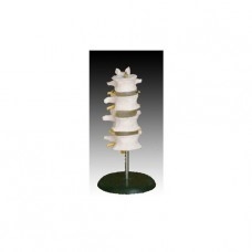Modelul pe suport prezintă vertebre lombare cu discuri intervertebrale și măduva spinării cu rădăcinile nervilor spinali.