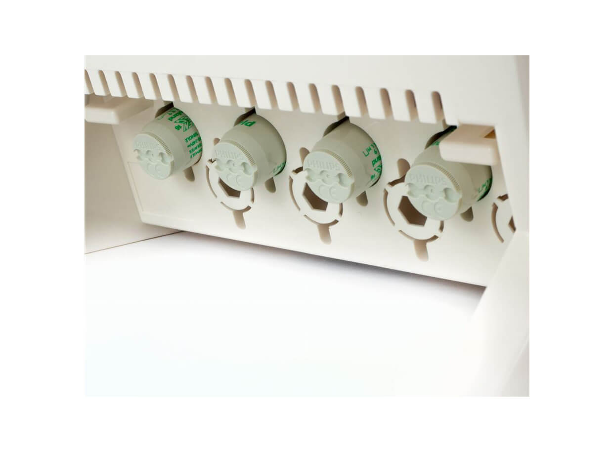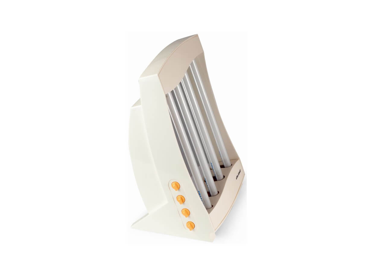 Tuburile dispozitivului sunt expuse panoramic pentru o luminare uniformă a feței și a decolteului și are un ecran reflector încorporat care facilitează procesul de bronzare.