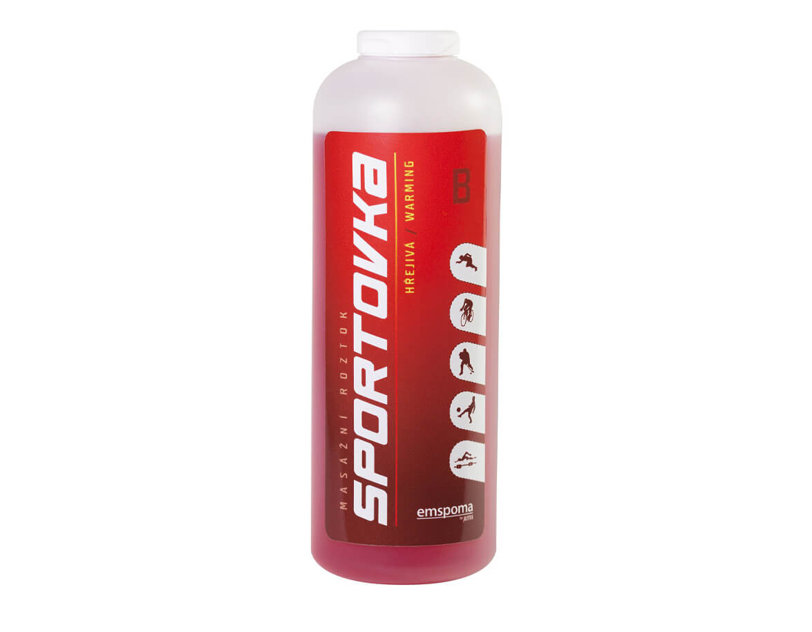 Soluție pe bază de alcool Sportovka Încălzitoare pentru masaj rgenerant de scurtă durată, pentru mușchi și articulații supraîncărcate după sport, exerciții fizice și alte eforturi fizice. Servește ca prevenție împotriva crampelor musculare și a tulburărilor de coordonare. Substanța activă este capsaicina, care creează o senzație de ușoară supraîncălzire în timpul aplicării soluției și ajută la îmbunătățirea circulației sanguine la nivelul pielii. Se absoarbe aproape imediat și lasă pielea fină și hidratată.