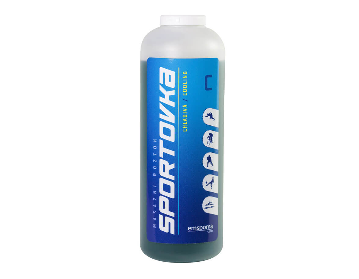 Soluție de masaj Sportovka Răcoritoare pe bază de alcool și adaos de mentol. Pe piele are un efect revigorant și răcoritor, care activează intea și alungă oboseala. Se absoarbe foarte rapid iar datorită glicerinei oferă pielii suplețe și catifelare.