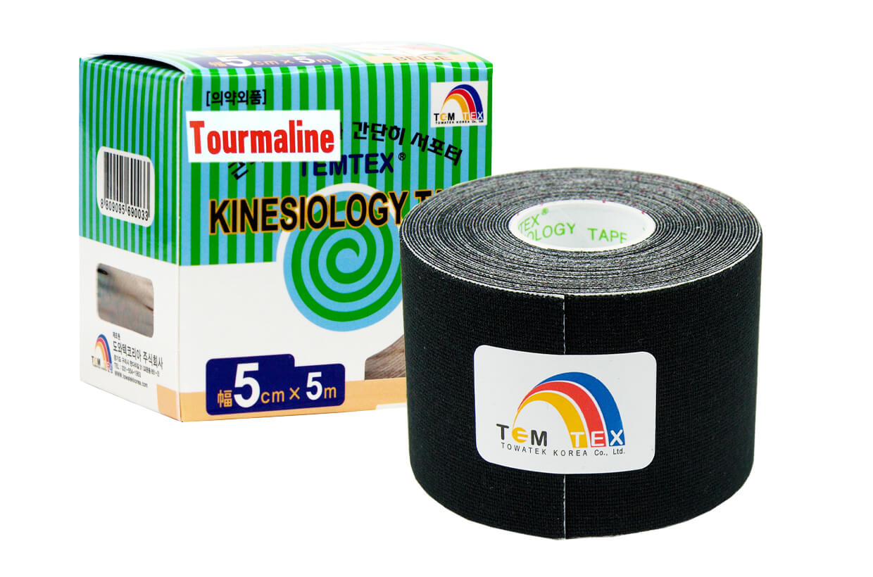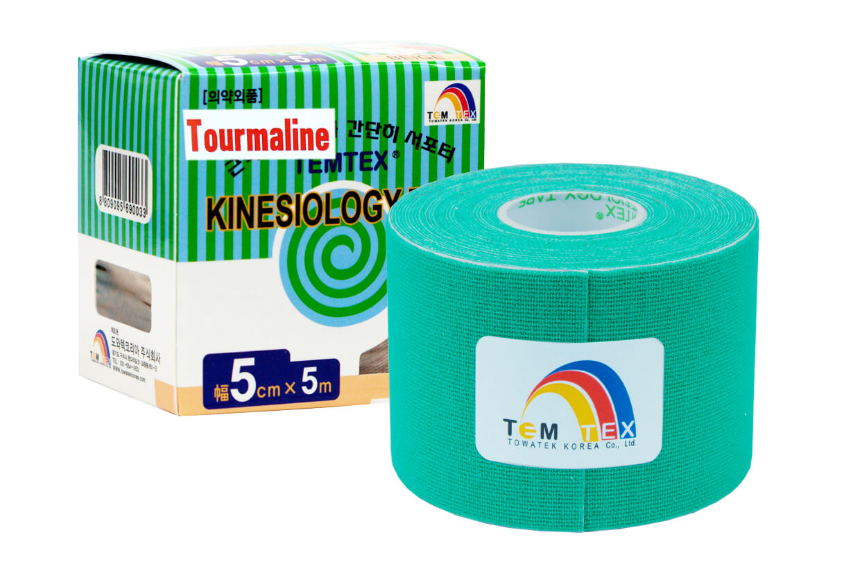 TEMTEX Kinesio tape Tourmaline conține pulbere din piatră semiprețioasă de turmalină fin măcinată ca și praf în adeziv, curăță sângele, calmează nervii, crește activitatea celulară, reducere durerile musculare și este sterilizant. În plus, benzile de turmalină au rezistență crescută la aderență.